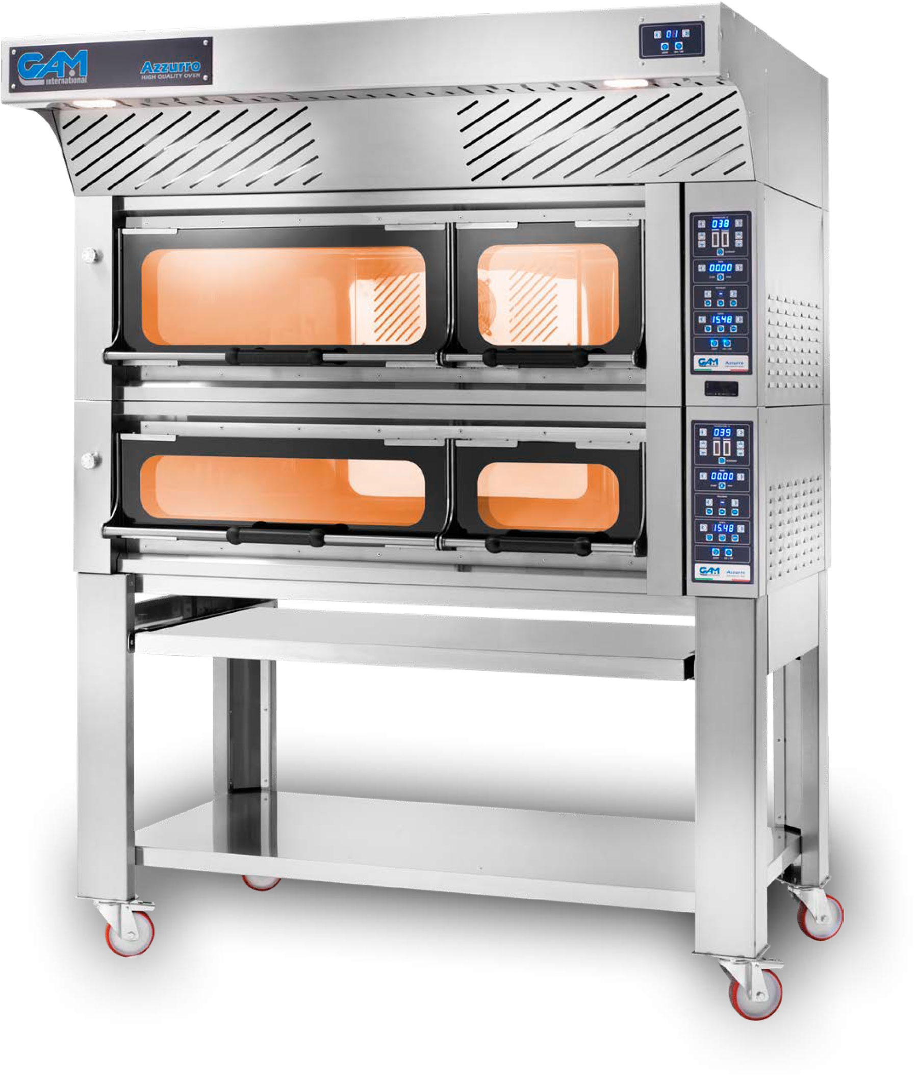 Специальные пицца-печи от GAM (Италия). Широкий модельный ряд: печи различаются по габаритам, производительности, количеству камер. Обеспечивают необходимую температуру до 500 градусов, которая контролируется независимыми термостатами. Есть вентиляционное отверстие для пара. Выпечка пиццы происходит на шамоте, которым оснащена каждая камера. Большая часть моделей имеет обзорные окна.
