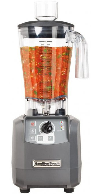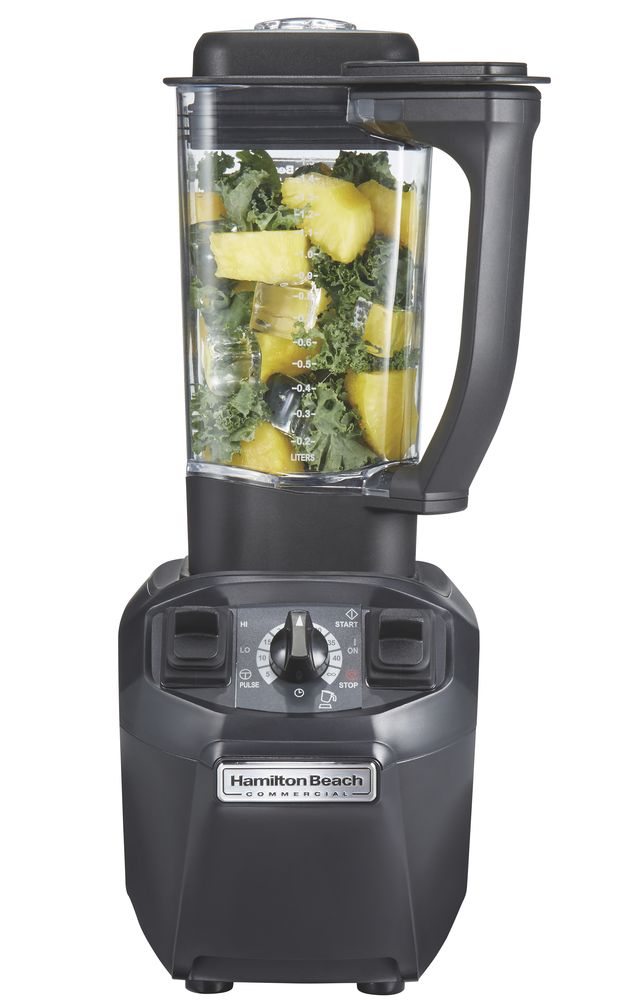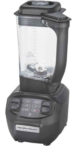 Барный блендер со стаканом объемом 1,4л из поликарбоната оснащён переключающимся таймером, сцеплением металл-металл. Может работать с кубиковым льдом. Отличный вариант для баров со средней проходимостью (до 50 напитков в день). Мощность двигателя 2,4 л/с. Запатентованная система Wave Action System от Hamilton Beach (уникальная форма стакана и ножей) имеет усиленные и увеличенные надежные ножи из нержавеющей стали. Среднее время приготовления коктейля - 15с. Резиновые наконечники на ножках блендера предотвращают скольжение блендера по поверхности при работе.
