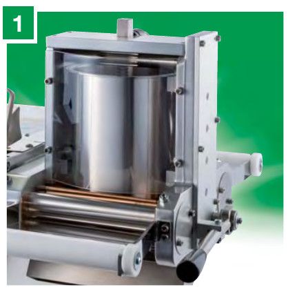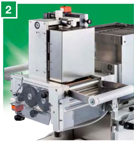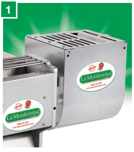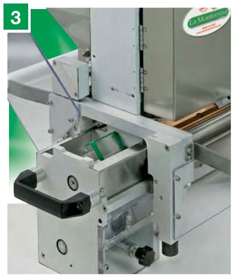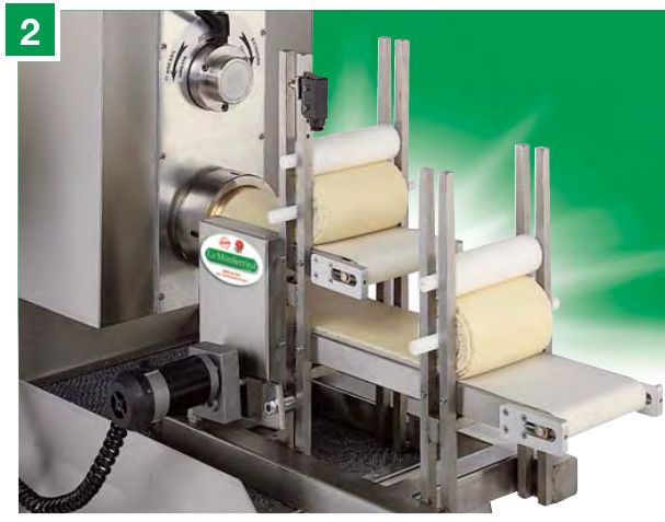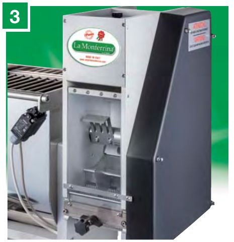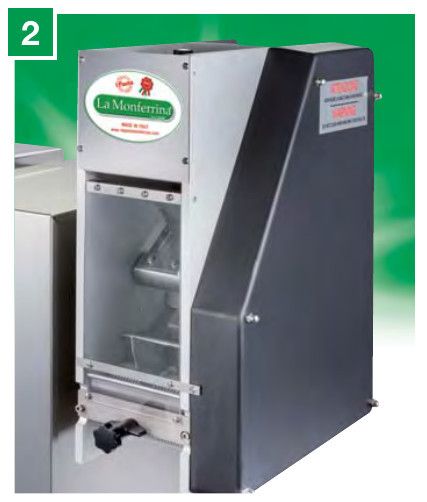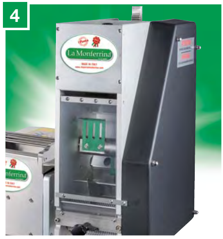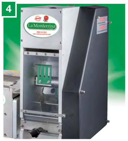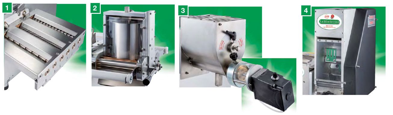 3 — Специальные насадки для резки лапши оснащены ножом для нарезки лапши специальных размеров (1,5-4-8-24 мм) и лапши с волнистым краем (12-18-24 мм). Некоторые насадки используются также на других машинах La Monferrina.