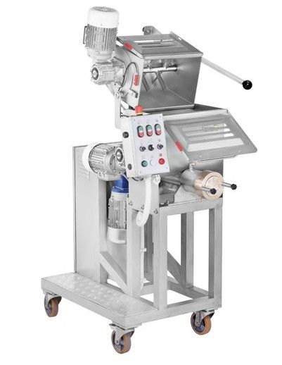 PNUOVA является комбинированной многофункциональной машиной, которая, в стандартной комплектации, используется для замеса и раскатывания теста. Объем тестомеса 4 кг. В качестве дополнительных насадок могут быть приобретены приставка для приготовления равиоли, лапши, ньокки различного размера, короткорезанных и длинных макаронных изделий.
