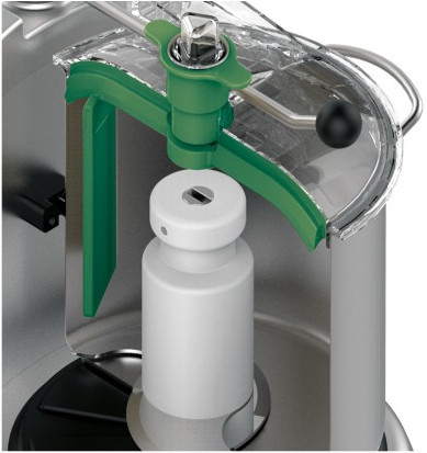Двигатель и чаша установлены рядом, что позволяет уменьшить передачу тепла от двигателя продукту в чаше.