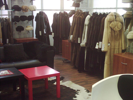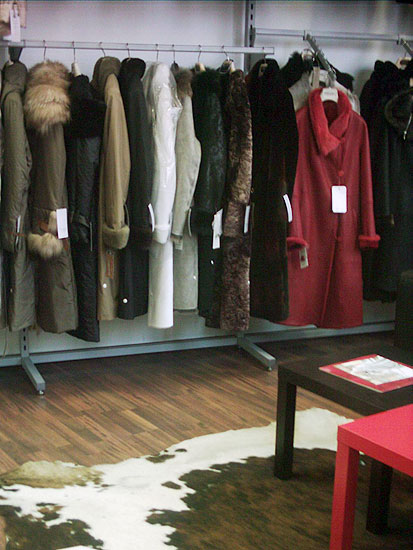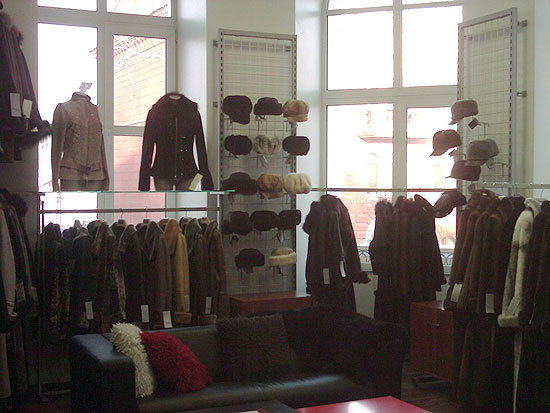 Салон меховых изделий. Площадь торгового зала — 50 кв.м. Форма торговли — самообслуживание.
