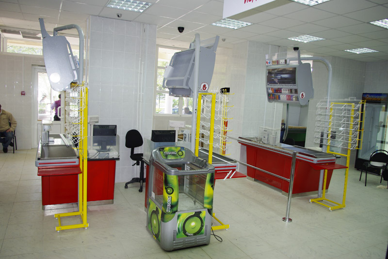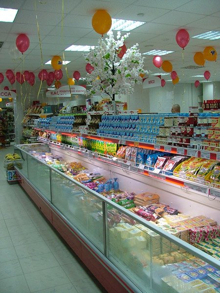 Выполнялись работы по проектированию предприятия торговли и производственных помещений, поставка оборудования в комплексе, проведение монтажных и пусконаладочных работ. Торговое оборудование витрины, горки, минигорки, бонеты марки ШТРИХ-М (Россия), стеллажи ШТРИХ-М (Россия), кассовые боксы ШТРИХ-М (Россия), централизованное холодоснабжение на базе полугерметичных компрессоров Bitzer (Германия).