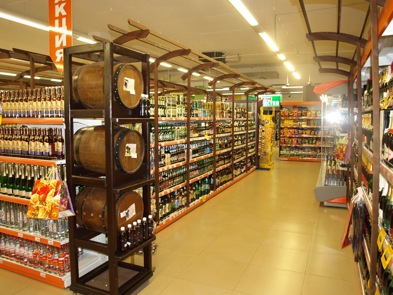 Супермаркет с площадью торгового зала 1000 м2. Складские, подсобные помещения, холодильные камеры размещены на уровне магазина и в подвале.