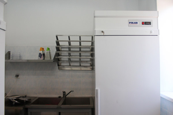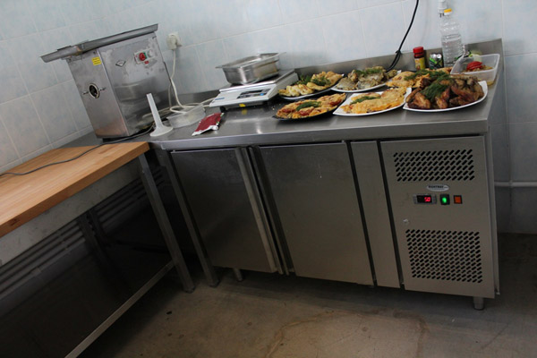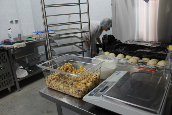 Специфика производственного цеха предполагает получение, фасовку, переработку и доготовку продуктов для продажи в торговом зале, а также приготовление широкого ассортимента блюд для кафе. Достаточно высокие объемы и темп производства требуют безотказной работы оборудования. Поэтому производственный цех и кафе были оснащены оборудованием самых проверенных производителей: ROBOT-COUPE, ANGELO PO, KOVINASTROJ и других европейских компаний.
