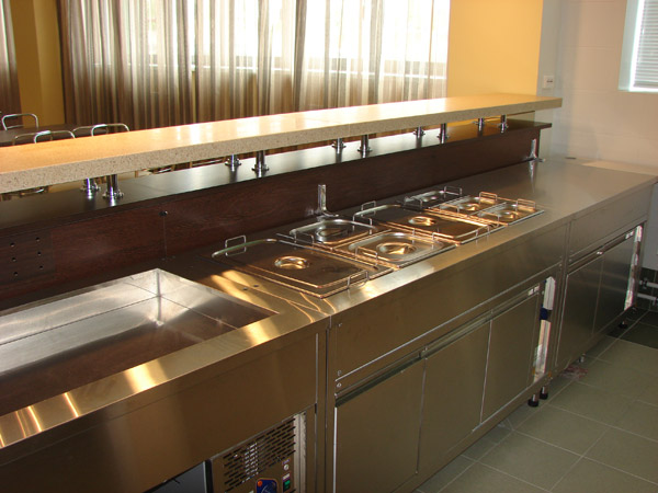 Столовая оснащена небольшим количеством оборудования, которое позволяет максимально использовать небольшую производственную площадь. Всего лишь несколько единиц технологического оборудования будут постоянно и интенсивно использоваться, поэтому для оснащения объекта были выбраны самые надежные европейские поставщики.