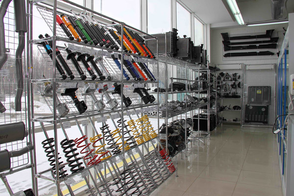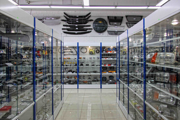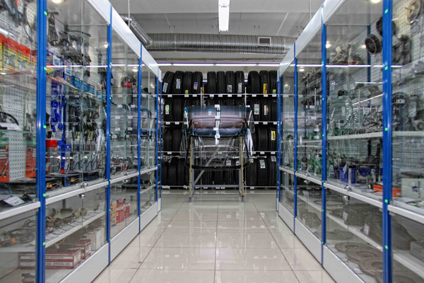 Для объекта были использованы крепкие и надежные торговые стеллажи и системы, позволяющие безопасно демонстрировать весь спектр автомобильных запчастей.