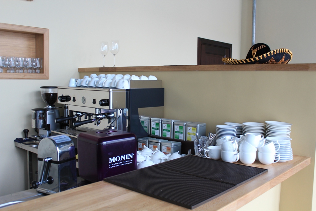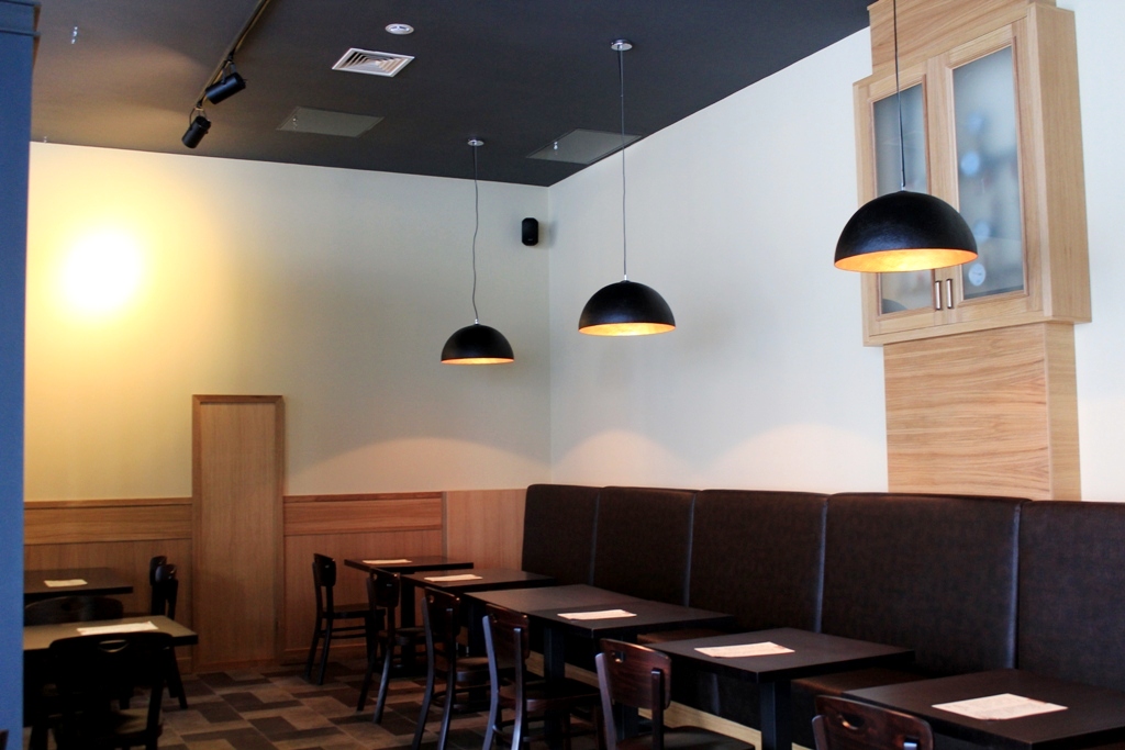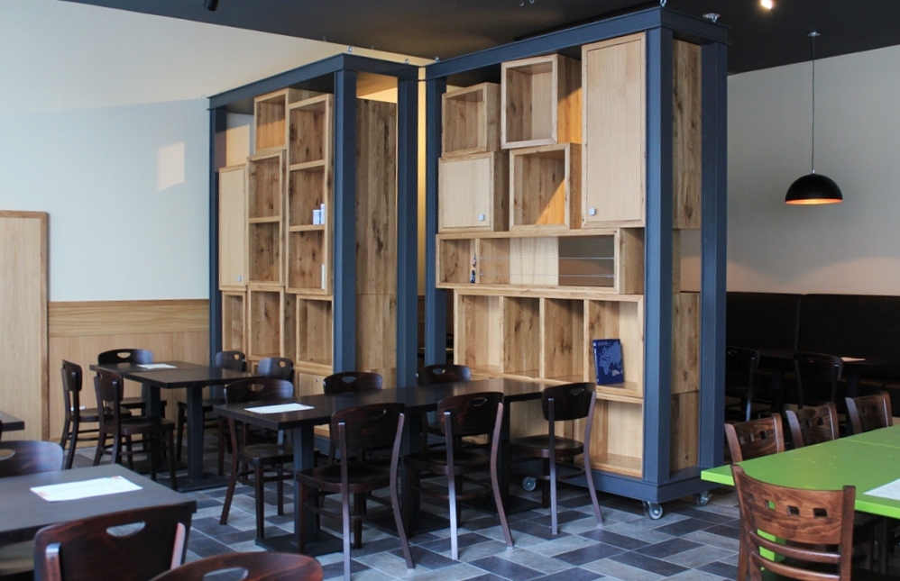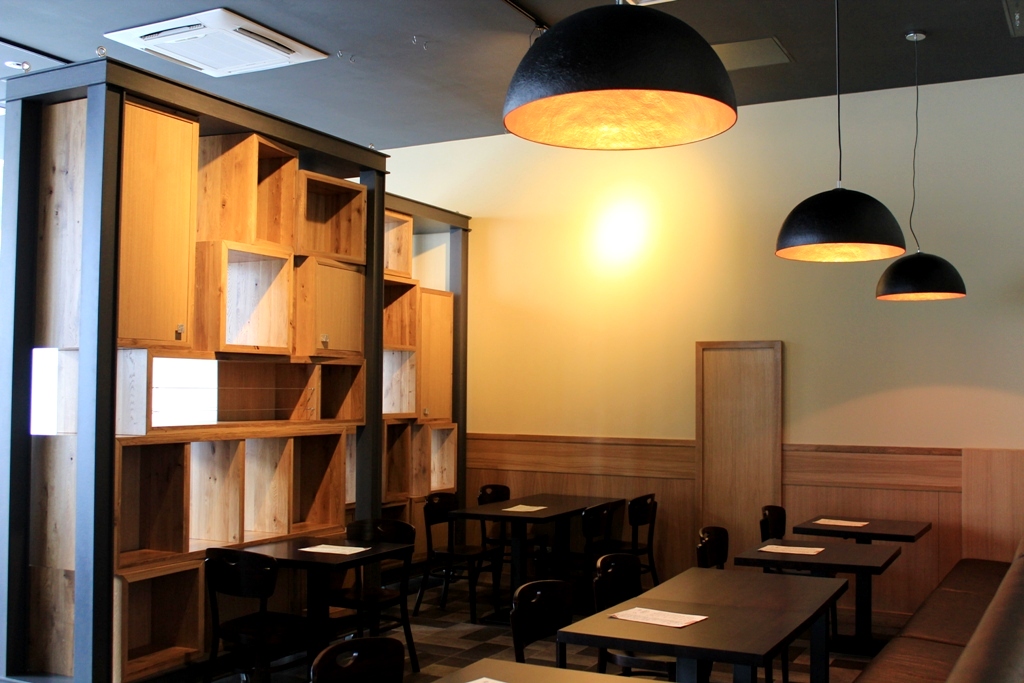 Помимо поставки и монтажа технологического оборудования, наши специалисты помогли оформить кафе в уникальном стиле, изготовив на заказ барную стойку, стеновые панели, встроенный диван, полки и пристенные консоли по индивидуальному эскизу дизайнера со стороны заказчика.