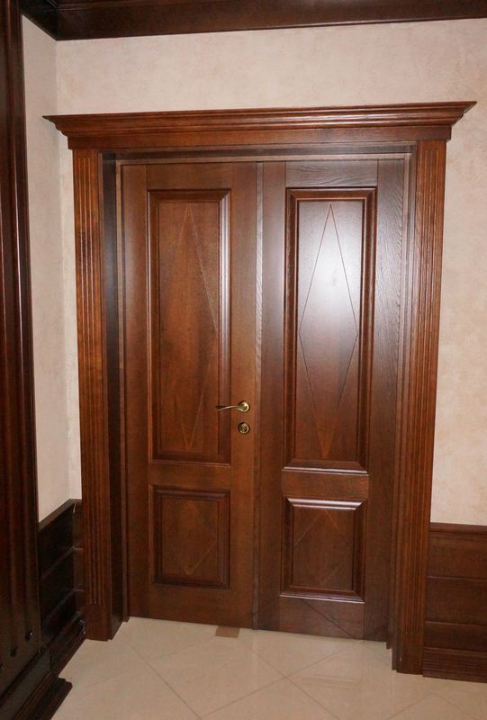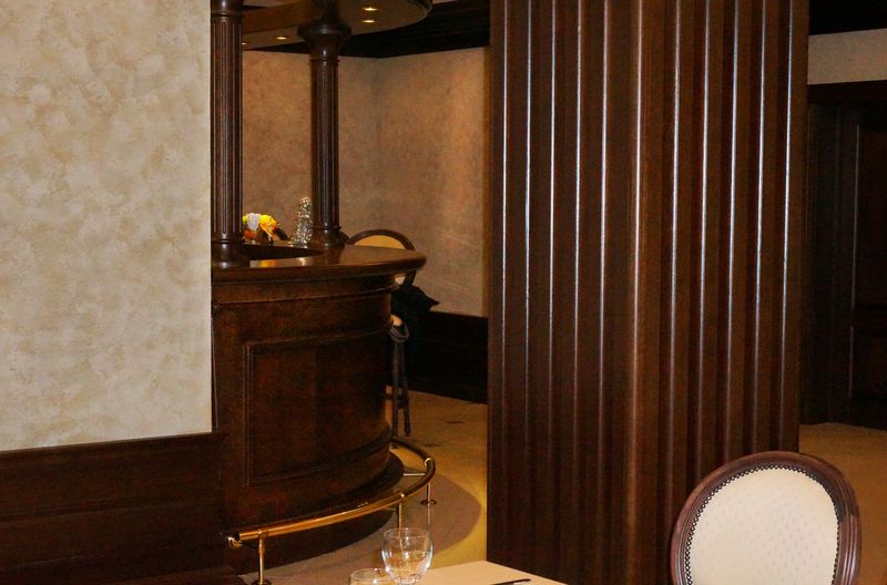 Отдельный акцент в интерьере — это двери. По индивидуальным эскизам выполнены 11 комплектов дубовых дверей. Безупречность исполнения этих элементов прекрасно дополняет внешний вид помещения.