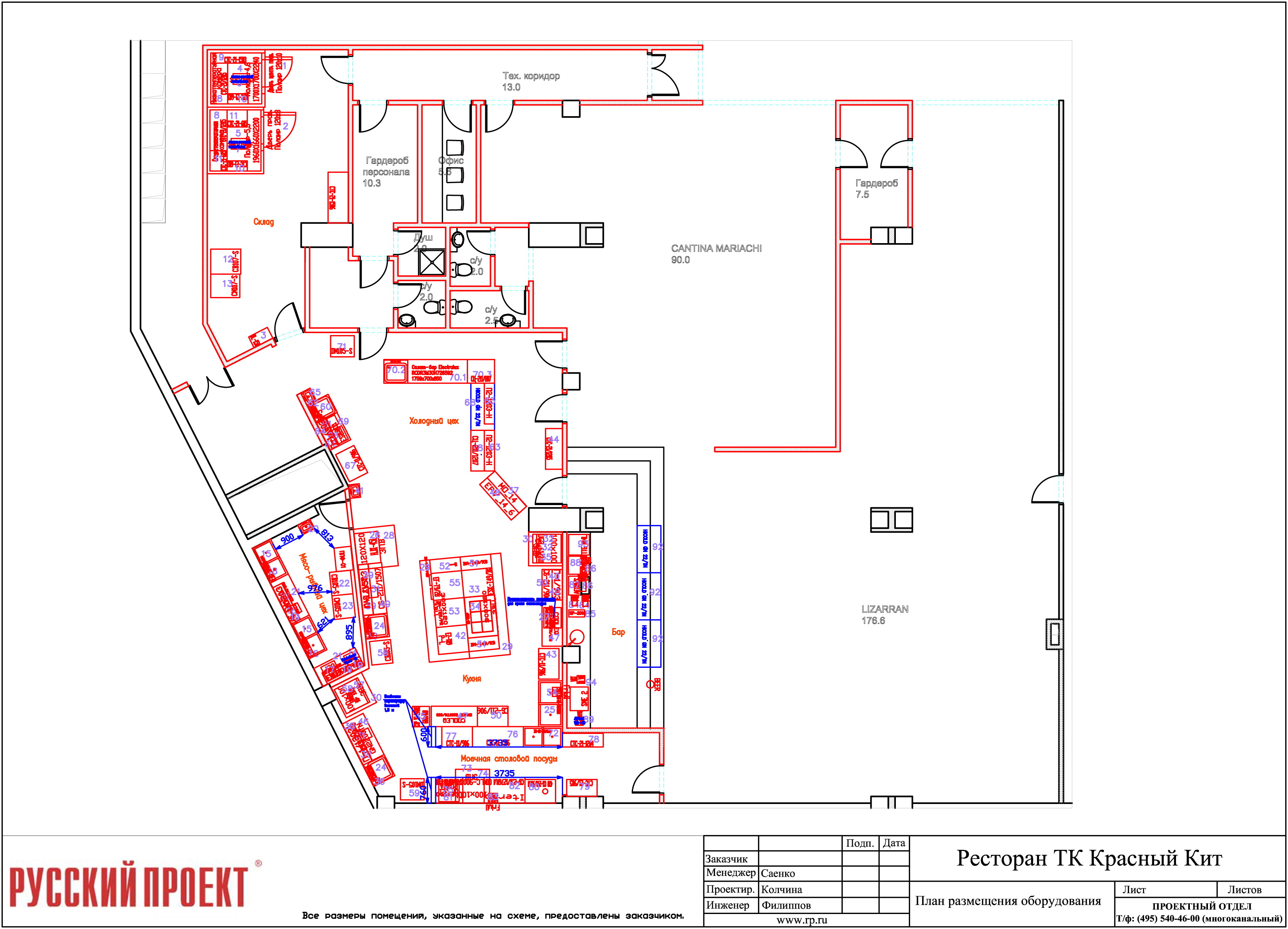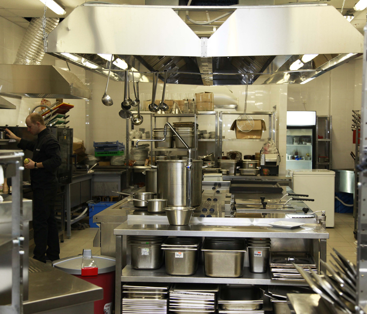 Два ресторана объеденены одной кухней. Меню заведений совершенно разные, поэтому кухня оснащена проверенным и надежным оборудованием.