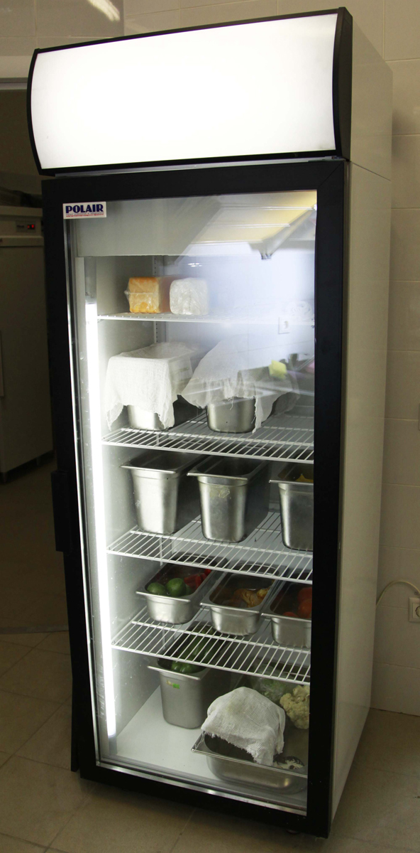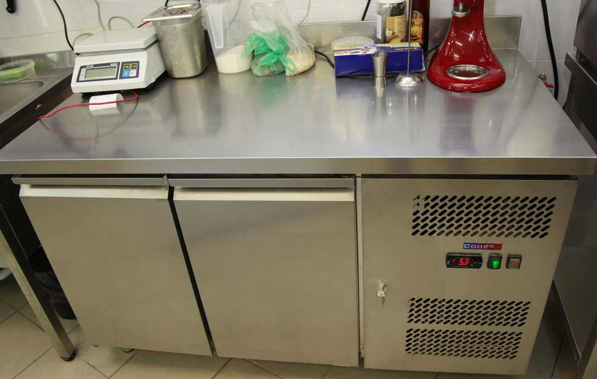 Кухня также оборудована столами с охлаждаемыми шкафами от китайского производителя Cooleq (Китай). Столы изготовлены из нержавеющей стали с искусственным охлаждением внутреннего объема.