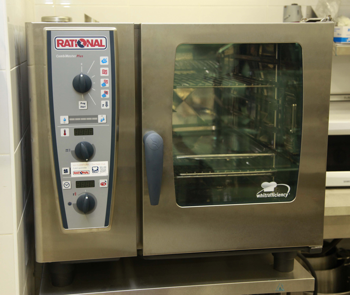 Технологическое оборудование представлено компанией RATIONAL ® и пароконвектоматом CombiMaster 61 Plus. Аппарат представлен в 5 рабочих режимах — горячий воздух, пар, комбинированный режим, низкотемпературный пар и регенерация Finishing. Благодаря этому в одном аппарате можно печь, жарить, готовить блюда-гриль и блюда на пару, тушить и бланшировать. Помимо значительной экономии времени, CombiMaster позволяет увеличивать объем загрузки на 30 %.