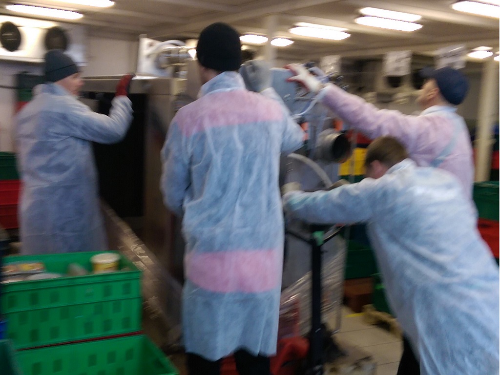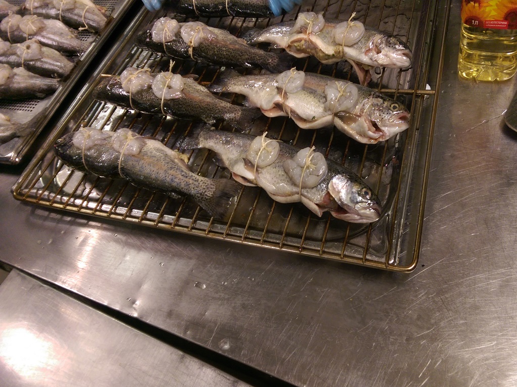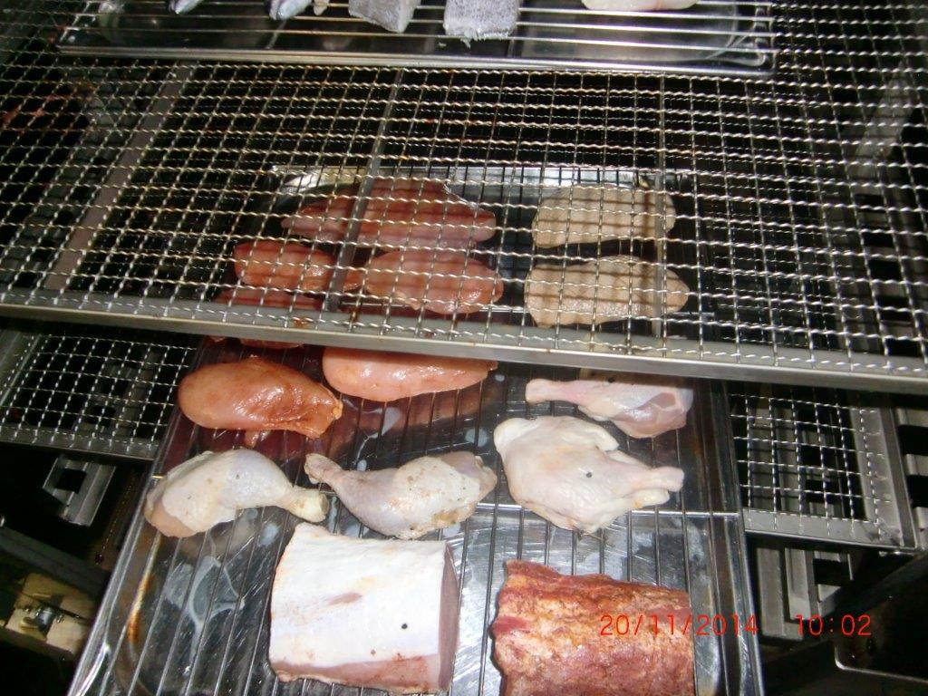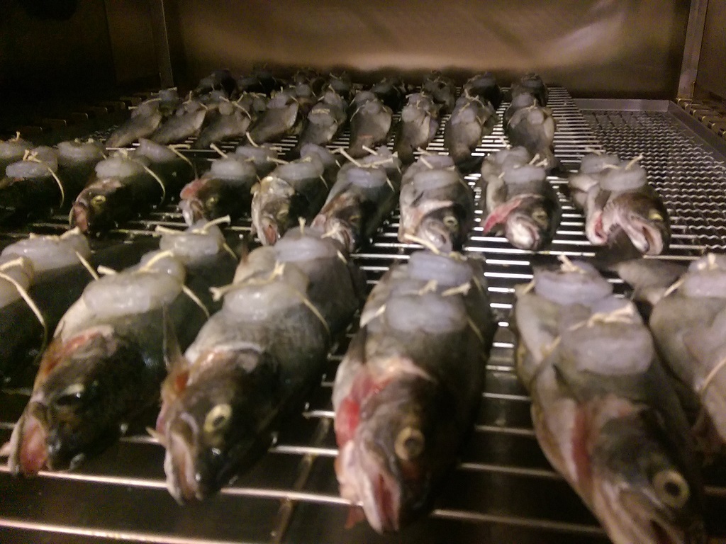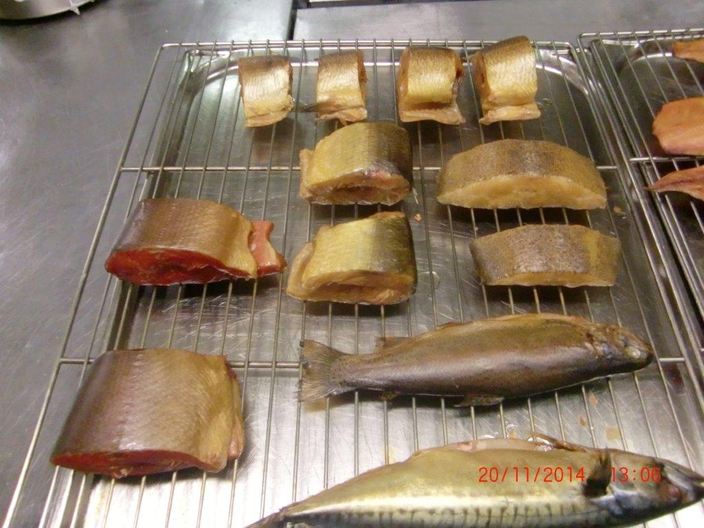 Коптильная камера размещена в горячем цеху предприятия. Заготовленные для копчения продукты подвозятся на тележках из заготовочных цехов. Ассортимент продукции включает в себя птицу (цыпленок, утка, индейка), колбасную продукцию высокого качества, морскую и речную рыбу, при этом нежирную рыбу (дорада, сибас и др.) подвергают горячему копчению, а жирную (черный палтус, муксун, нерка, омуль и др.) – холодному. При горячем копчении продукты обрабатывают горячим дымом 50-80 °С, при холодном соответственно холодным 20°С. И если для первого достаточно 1-2 часа, то для второго требуется 4-5 часов. Для коптильной камеры LEFA TSFR 100 загрузка тележки в среднем 150 – 200 кг для мяса и 100 – 150 кг для рыбы. То есть за смену 8 часов производительность составит до 1т мяса при горячем копчении и 300 кг для рыбы холодного копчения. Для копчения была выбрана щепа бука фракцией 1-2мм (получившая наибольшее распространение и признание в Европе).