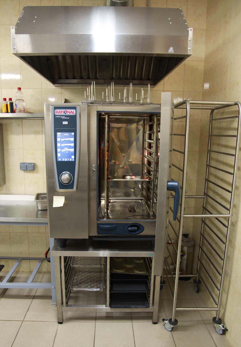 В горячем цеху установлен пароконвектомат SCC 101 WHITEFFICIENCY от компании RATIONAL ® (Германия). Это первый «умный» аппарат. Благодаря высокотехнологичным датчикам и особой системе, оборудование распознает размер, количество и состояние загруженных продуктов. Пароконвектомат выбирает идеальный путь приготовления блюда, и даже сам может определить степень подрумянивания продуктов.