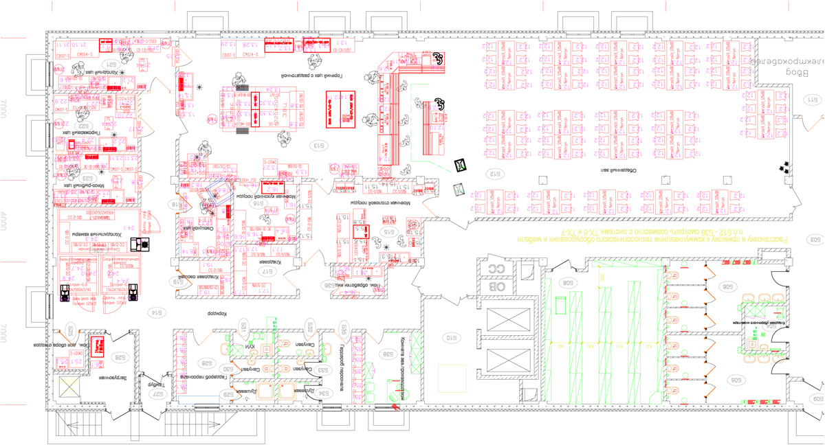 В столовой, расположенной в налоговой г. Одинцово, очень обширное меню. Посетителям предлагают несколько видов супов, горячих блюд, салатов, а также выпечку собственного производства. При этом, в столовой на 100 посадочных мест, работают не более пяти человек. Для того, чтобы наладить рабочий процесс эффективно, помещение достаточно было оснастить «правильным» оборудованием. Столовая в налоговой — это горячий, холодный, мясорыбный, пирожковый, овощной цеха, помещение для обработки яиц, две моечные, холодильные камеры для хранения овощей и мяса, обеденный зал и гардеробные комнаты. Среди оборудования встречаются, как российские, так и европейские бренды.