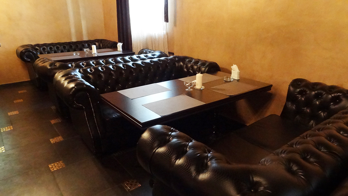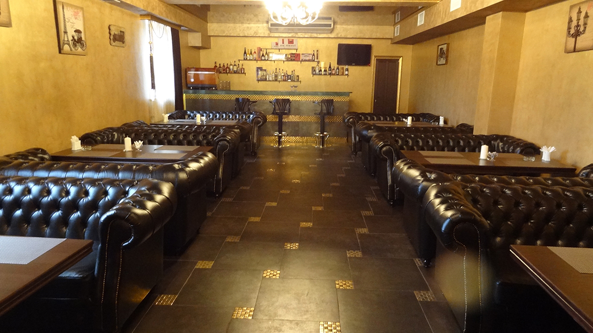 Кухня - традиционная осетинская, кавказская, а также европейская. Компания «Русский Проект»® в 2014 году осуществила комплексную поставку мебели в бар ресторана. Уютные диваны с утяжкой из материала имитирующего кожу рептилий создают респектабельную атмосферу, присущую английским закрытым клубам.