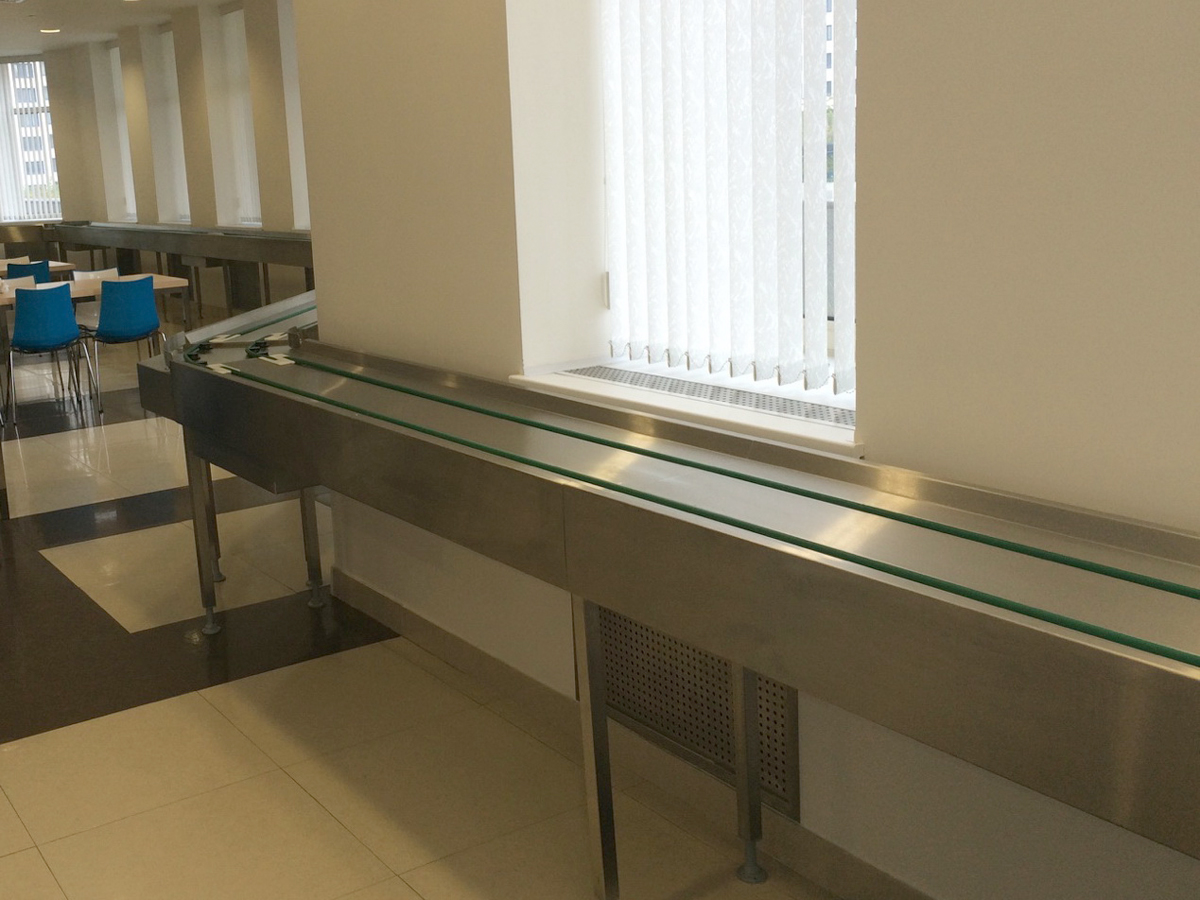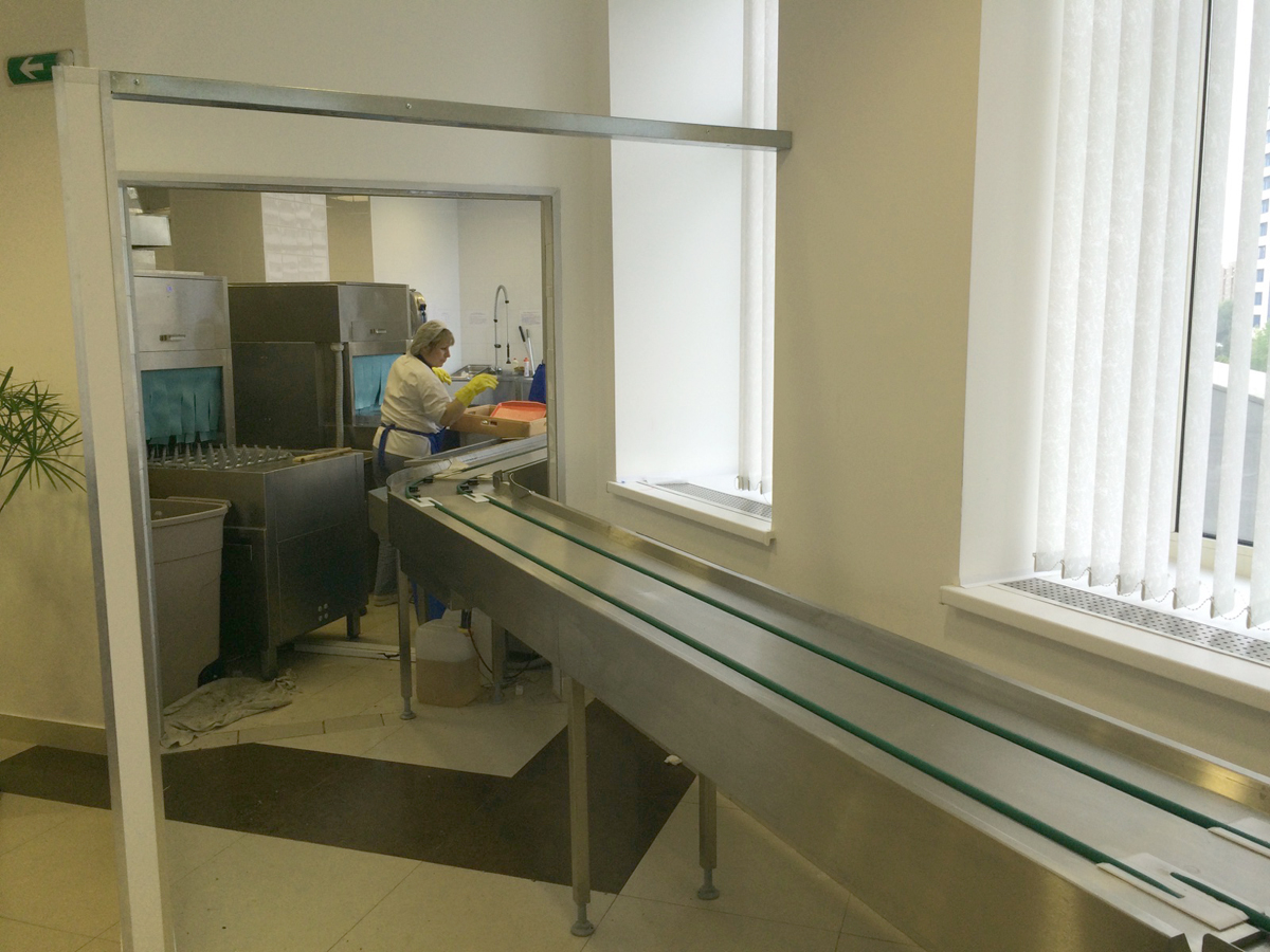 В разработке объемно-планировочного решения, было учтено требование заказчика по наличию нескольких линий раздач с различным ассортиментом блюд. Изначально, проектировалась столовая для центрального офиса ПАО «Газпром» большой мощности, на 400 посадочных мест. Ввиду большого объема производства и, как следствие, большого количества пищевых отходов, технологами компании «Русский Проект»® была предложена уникальная система утилизации пищевых отходов со всего объекта. Эта система заключается в устройстве центральной зоны измельчения, сепарирования и хранения твердой измельченной массы.