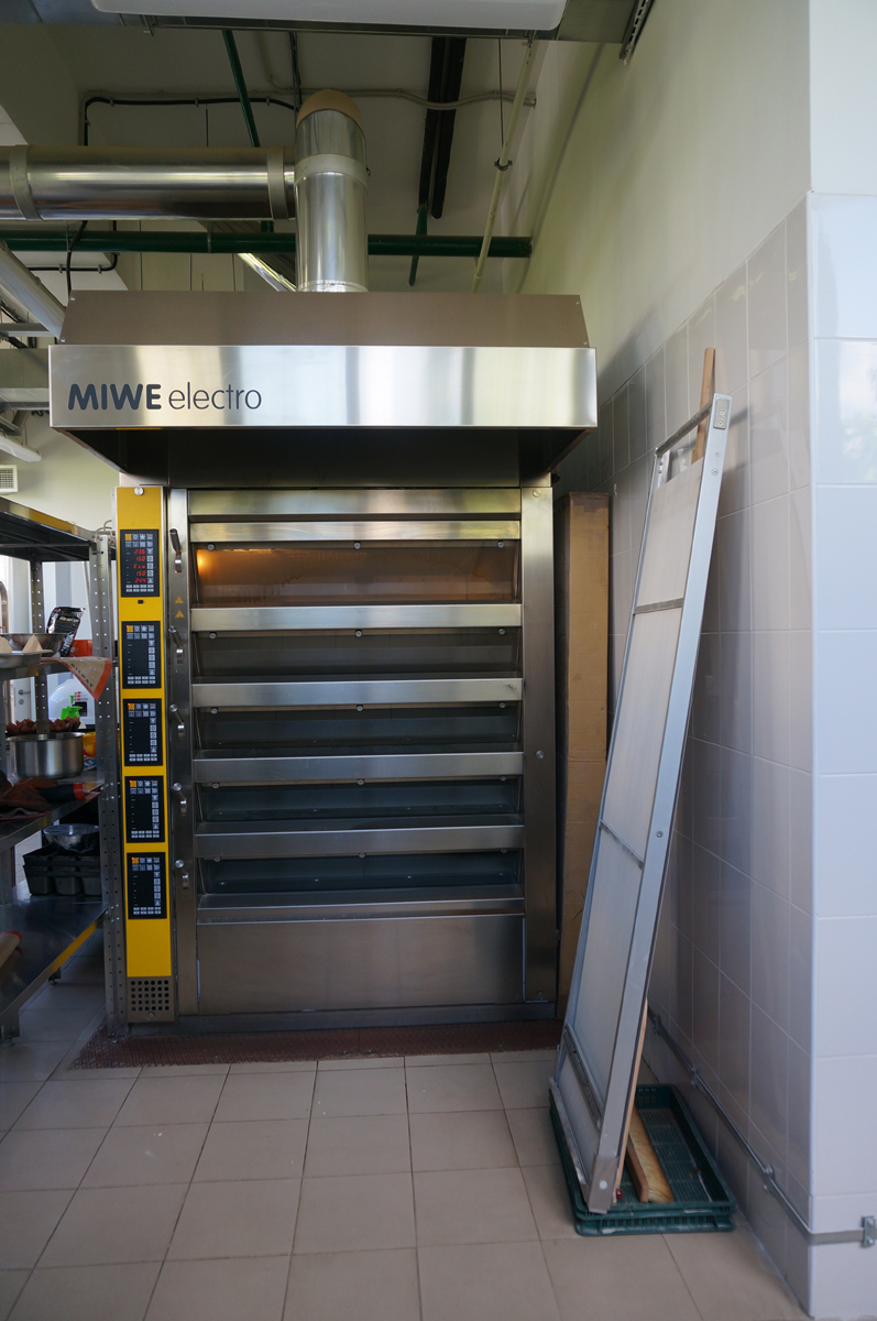 В проекте предусмотрен полноценный мучной цех, который будет работать и «на вынос». Для этого установлена подовая печь MIWE большой производительности на 5 уровней, позволяющая выпекать широкий ассортимент продукции, в том числе, хлеб для бургеров разных сортов. Специально для этого выделена зона для бургеров: котлеты жарятся на угольном гриль-мангале PIRA, а собираются они на специальном столе с холодильной витриной TEFCOLD.