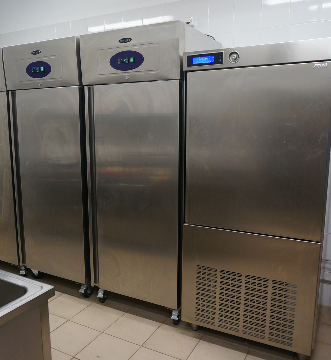Благодаря высокой степени надежности и широкой ассортиментной линейке, во всех цехах кухни установлено датское холодильное оборудование TEFCOLD.