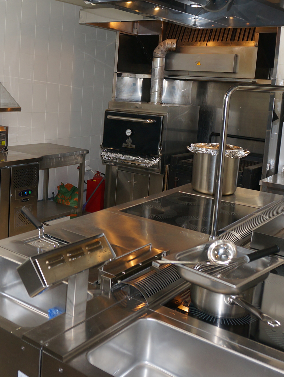 Отдельного внимания заслуживает гриль мангал PIRA. Угольная печь поддерживает высокую температуру на стабильном уровне внутри рабочего объема. Оборудование обладает высокой производительностью и скоростью приготовления блюд, что очень важно для активной публики данного заведения. Кроме завсегдатаев цеха, аппаратов RATIONAL ® и теплового острова Electrolux, поставлено и оборудование для низкотемпературного приготовления sous vide - (по-французски это означает - "в вакууме") для приготовления мясных, овощных, фруктовых, рыбных блюд. В результате применения такой технологии продукты не только проходят щадящую термическую обработку, но и сохраняют все природные ароматы и вкусы.