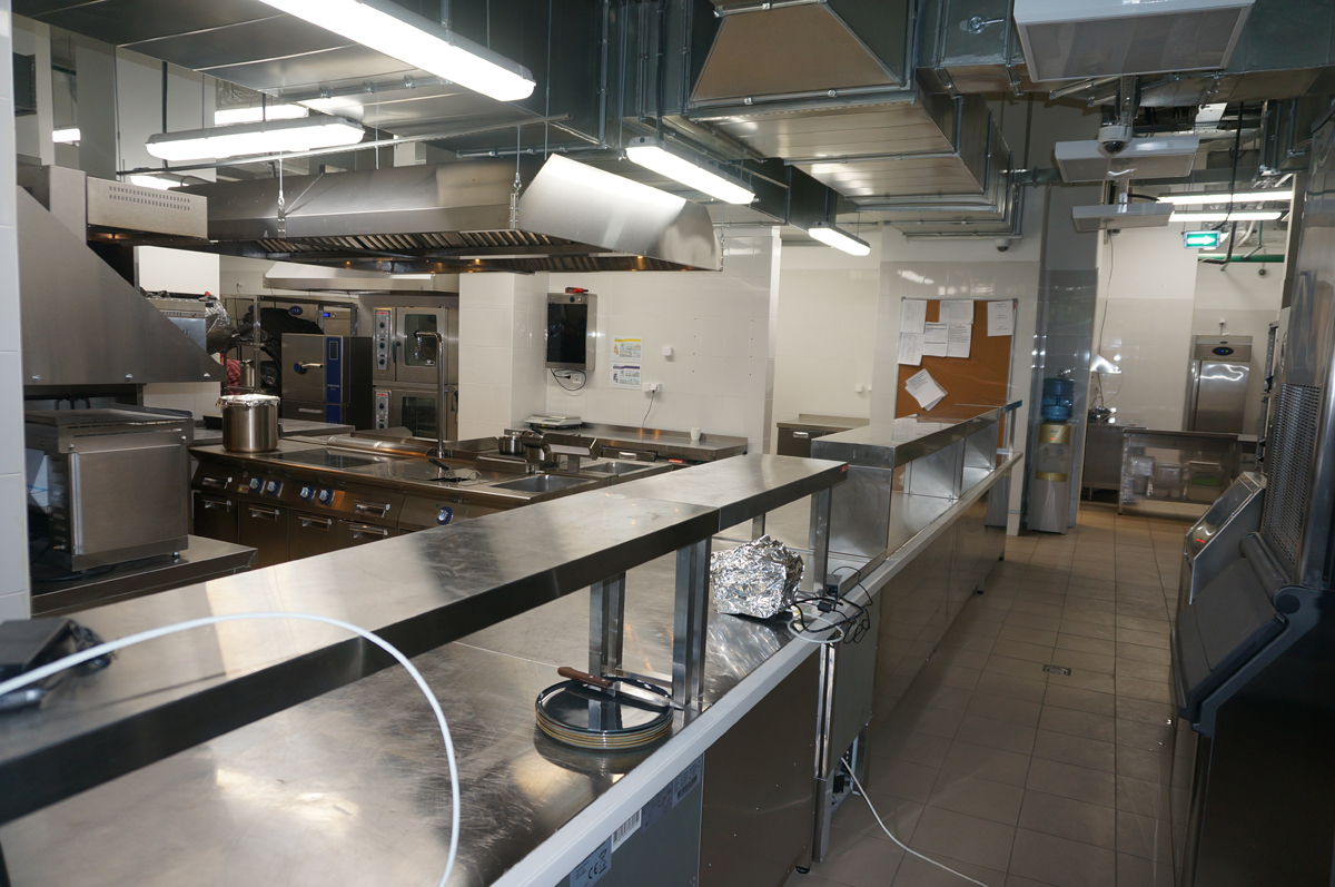 Кухня ресторана расположена на 1 и 2 этажах. Площадь кухни около 500 кв.м. На первом этаже расположены складские помещения, помещения для персонала и мини-прачечная. На втором этаже расположилась основная кухня: заготовочные цеха, горячий, холодный, цех для суши, цех выпечки пиццы, мучной, кондитерский и десертные цеха.
