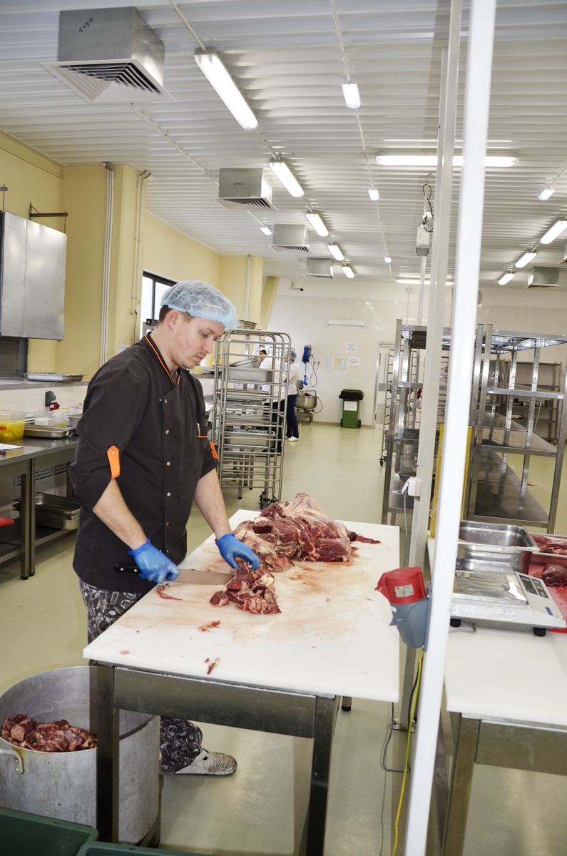 Компания «Русский Проект»® осуществила проектирование и поставку технологического оборудования и инвентаря для комбината питания. Объёмно-планировочное решение выполнено по нормам технологического проектирования заготовочных предприятий общественного питания по производству полуфабрикатов,