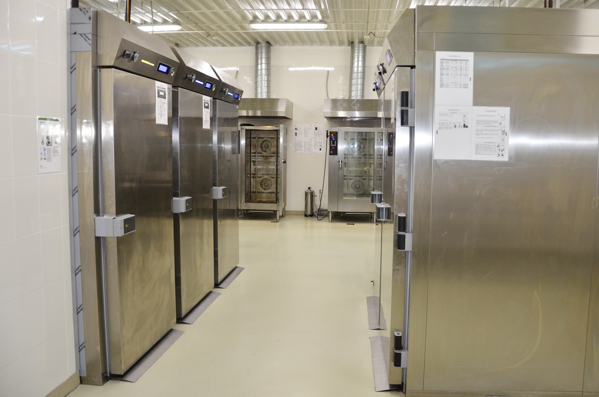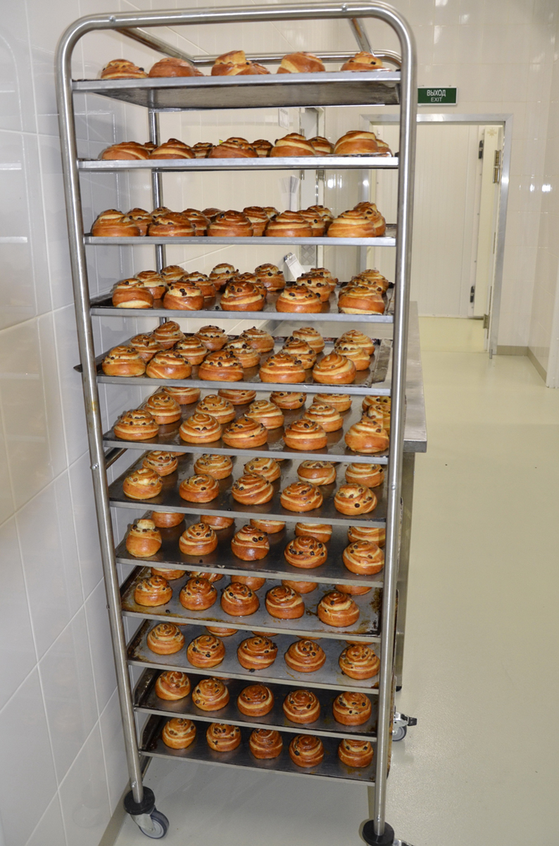 Производственные цеха для приготовления мучных и кондитерских изделий расположены последовательно, согласно технологическим этапам, для обеспечения максимальной поточности производства. Вода на замес теста в пекарне дозируется согласно рецептуре автоматически, с необходимой температурой, при помощи дозатора-смесителя воды. Замесы теста, а также замесы и сбивание кондитерских п/ф, производятся порционно, согласно производственному заданию, с соблюдением технологических инструкций. Окончательная расстойка и выпечка мучных, хлебобулочных изделий, тестовых кондитерских полуфабрикатов осуществляется на оборудовании итальянского производителя BASSANINA.
