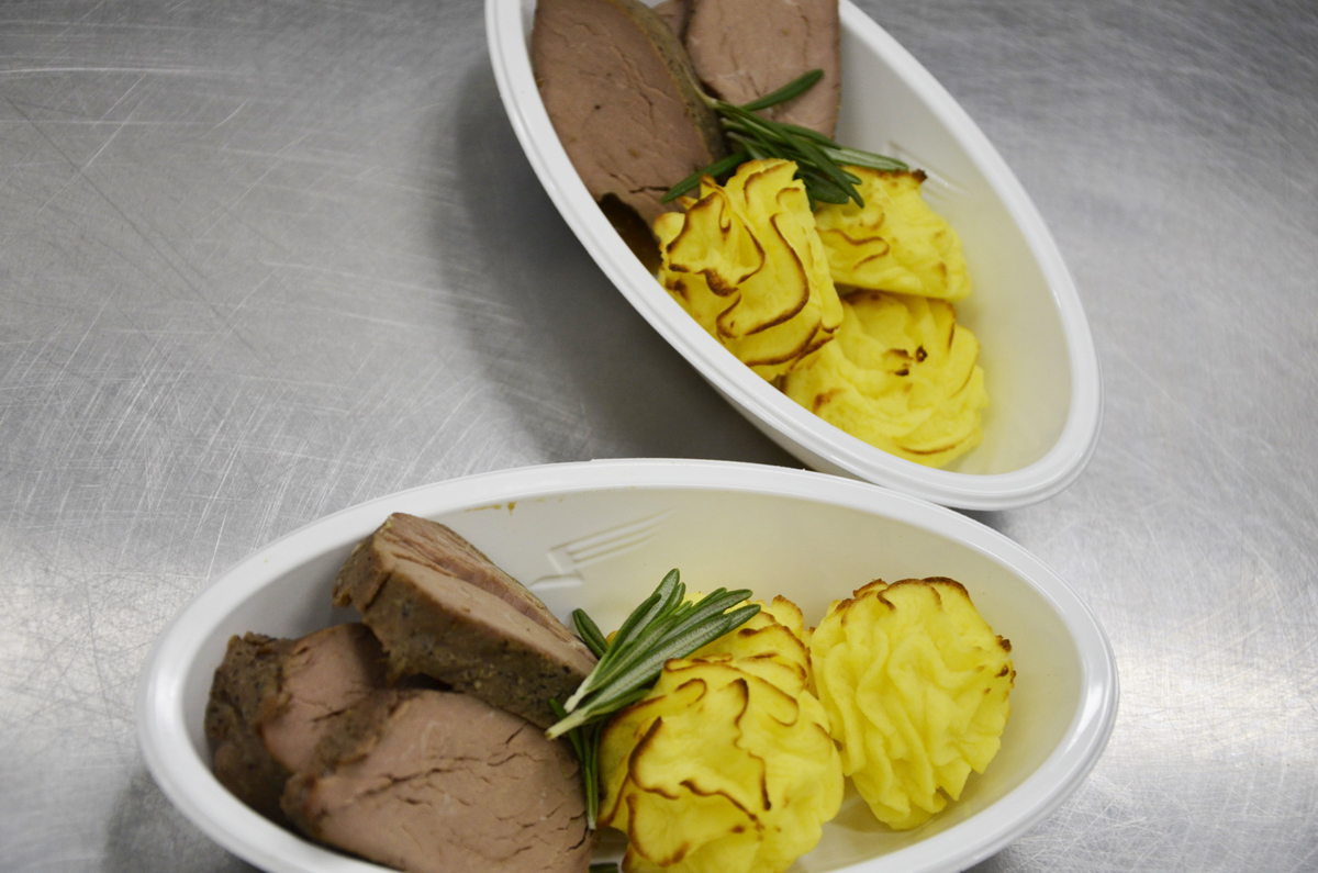 Меню бортового питания включает в себя горячие и холодные блюда, супы, закуски, десерты, напитки - до 5000 единиц готовой кулинарии. При этом в производстве бортового питания используются только натуральные продукты, без применения консервантов. Для приёма сырья и других продуктов на предприятии предусмотрена масштабная разгрузочная зона. Большое внимание уделено контролю качества поставляемого сырья: начиная от контроля кузова у грузового автотранспорта, осуществляющего доставку и заканчивая проверкой свежести овощей и наличием сертификации. Для хранение сырья и продуктов предусмотрены камеры средне- и низкотемпературные, а так же стеллажи для дефростации и ванны на колесах.