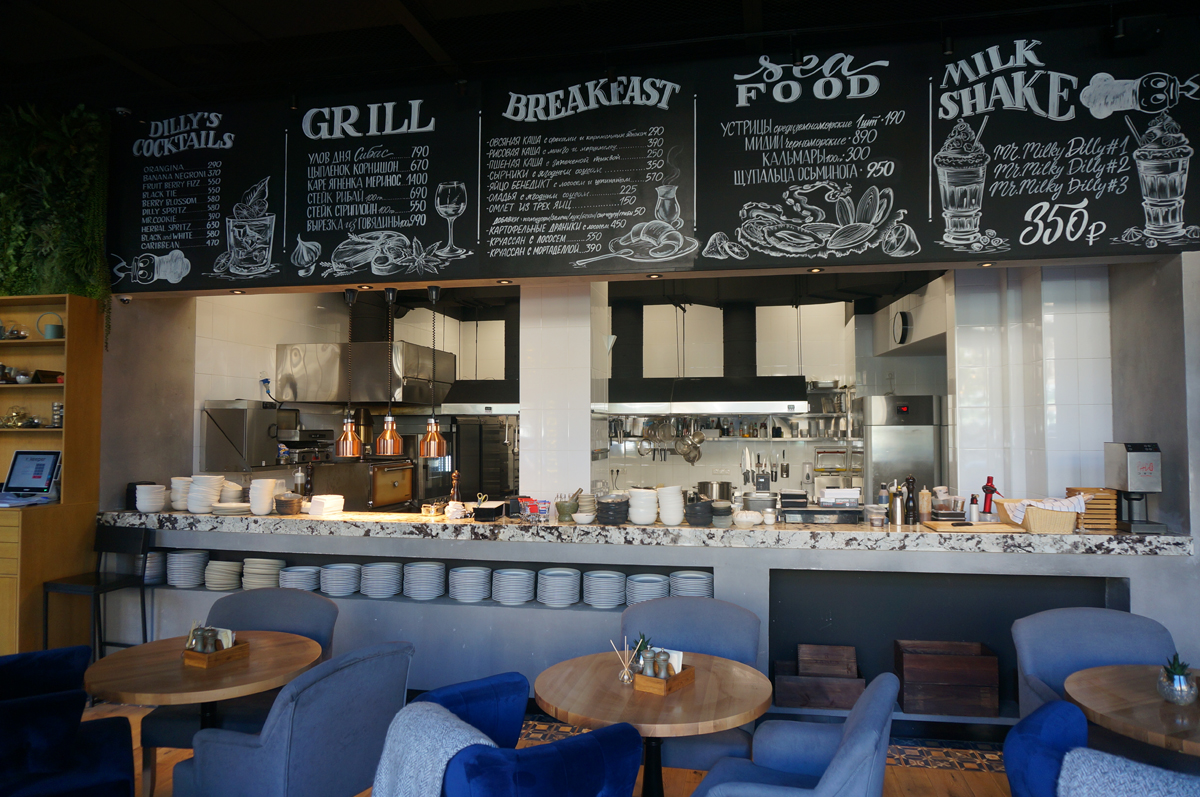Стильное уютное кафе «Dilly» со вкусной европейской кухней в авторской обработке. За ваше удовольствие от блюд отвечают бренд-шеф Андрей Коробяк и шеф-повар Денис Крылов. Общее количество посадочных мест 115, из них на веранде 40. Есть детская игровая комната и детское меню.