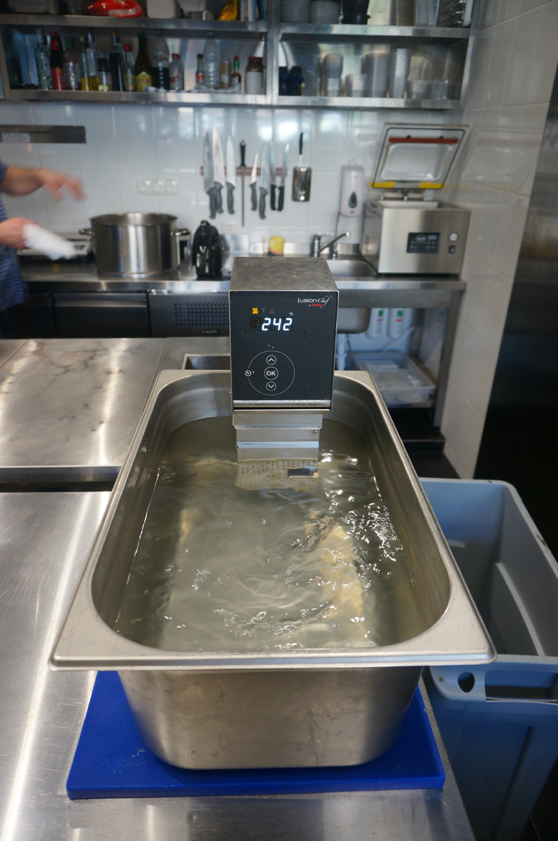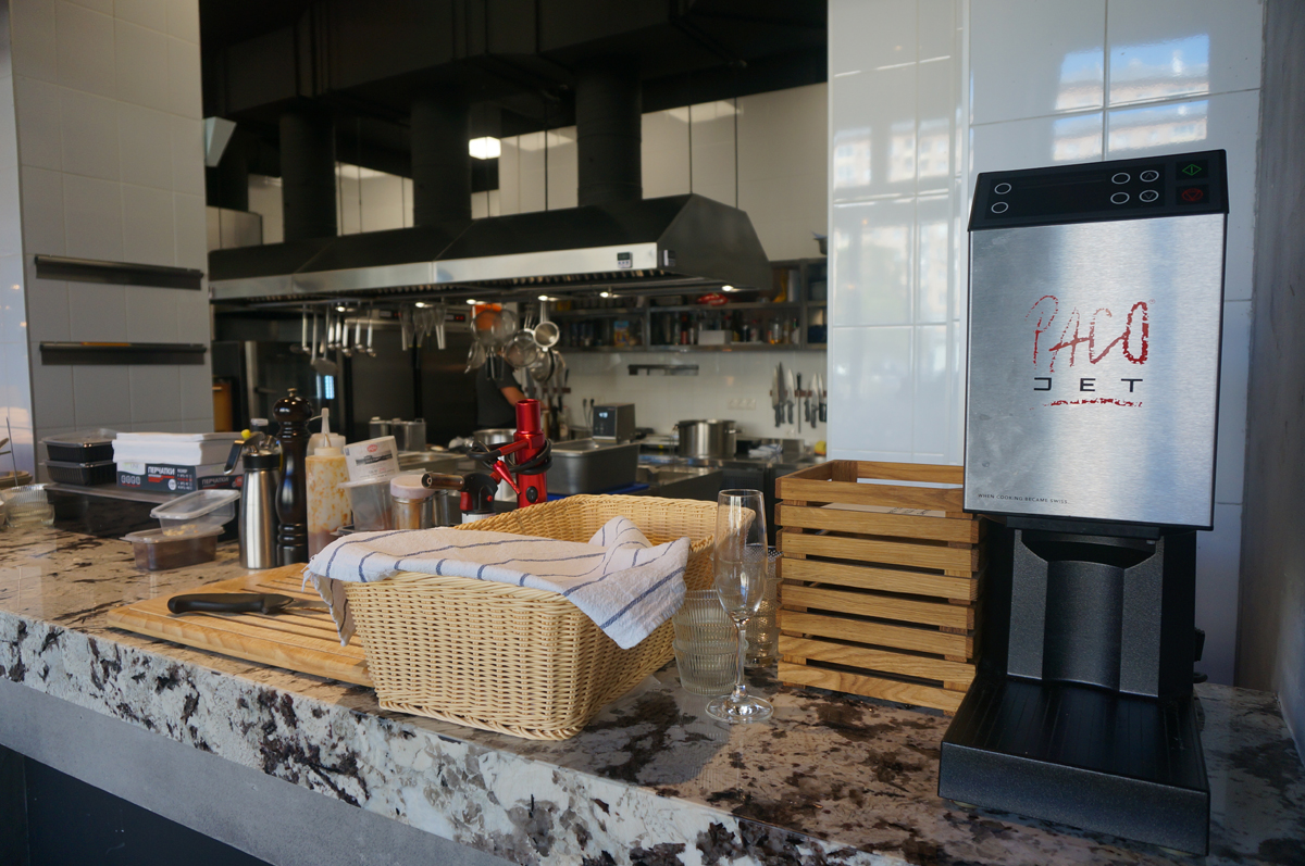 Изюминкой бара стал аппарат PACOJET II - кухонная машина, которая поднимает приготовление пищи к новым вершинам кулинарного мастерства. Теперь с ним стало еще легче работать. Полный цикл очистки отображается на дисплее. Автоматический контроль к переполнению содержимого контейнера, без оттаивания продуктов.