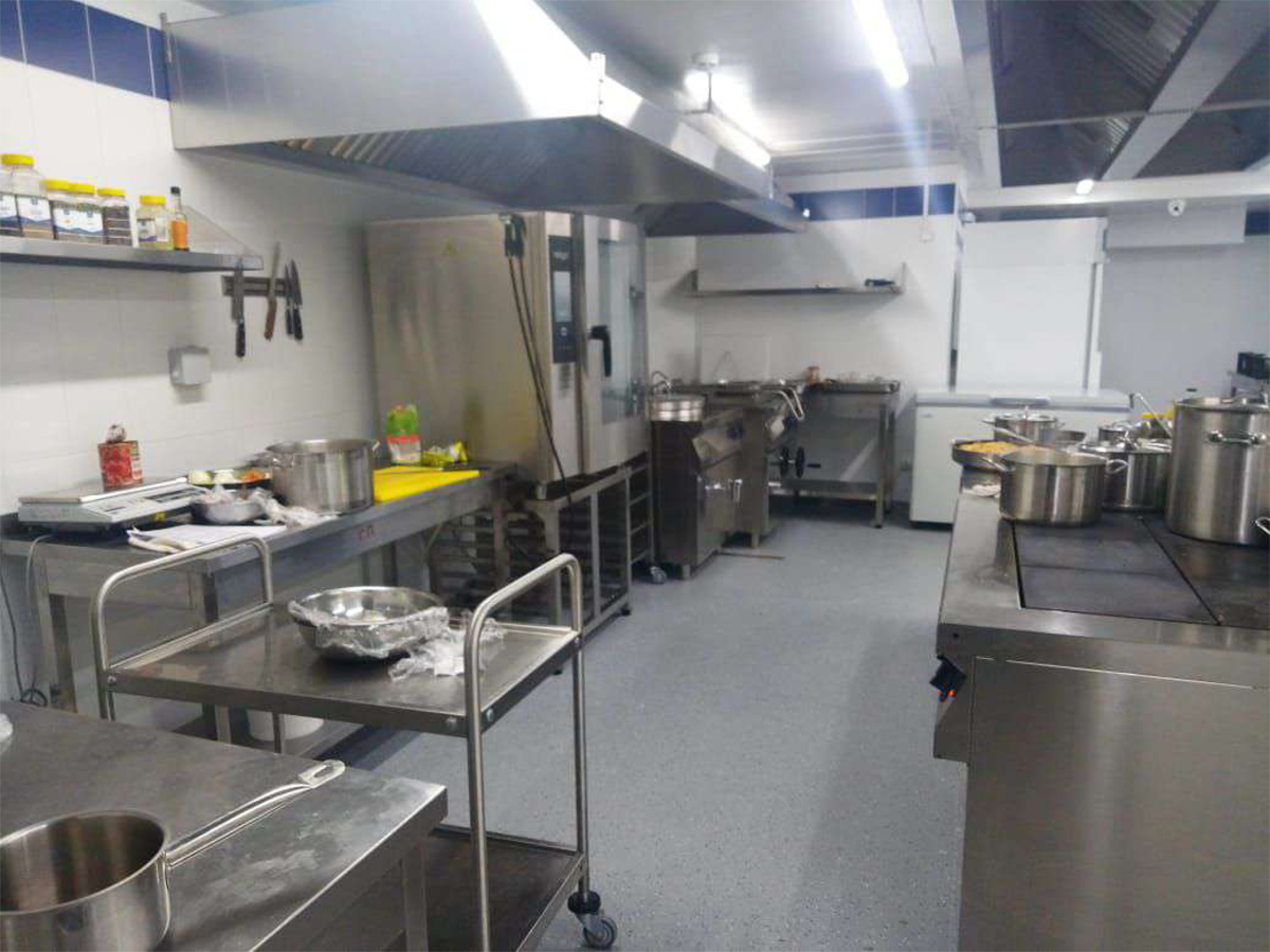 Основу горячего цеха составило оборудование от европейского производителя KOVINASTROJ: 6 конфорочная электроплита ES-T69/P, котел пищеварочный EK-T7/80-O, сковорода опрокидывающаяся EKP-T9/80. Все они зготовлены из тщательно подобранных качественных комплектующих, прослужат долго и надежно, ведь кухонное оборудование KOVINASTROJ по своим техническим характеристикам и стабильной долговечности не уступает оборудованию ведущих мировых производителей, демонстрируя пример классического сочетания цена-качество.