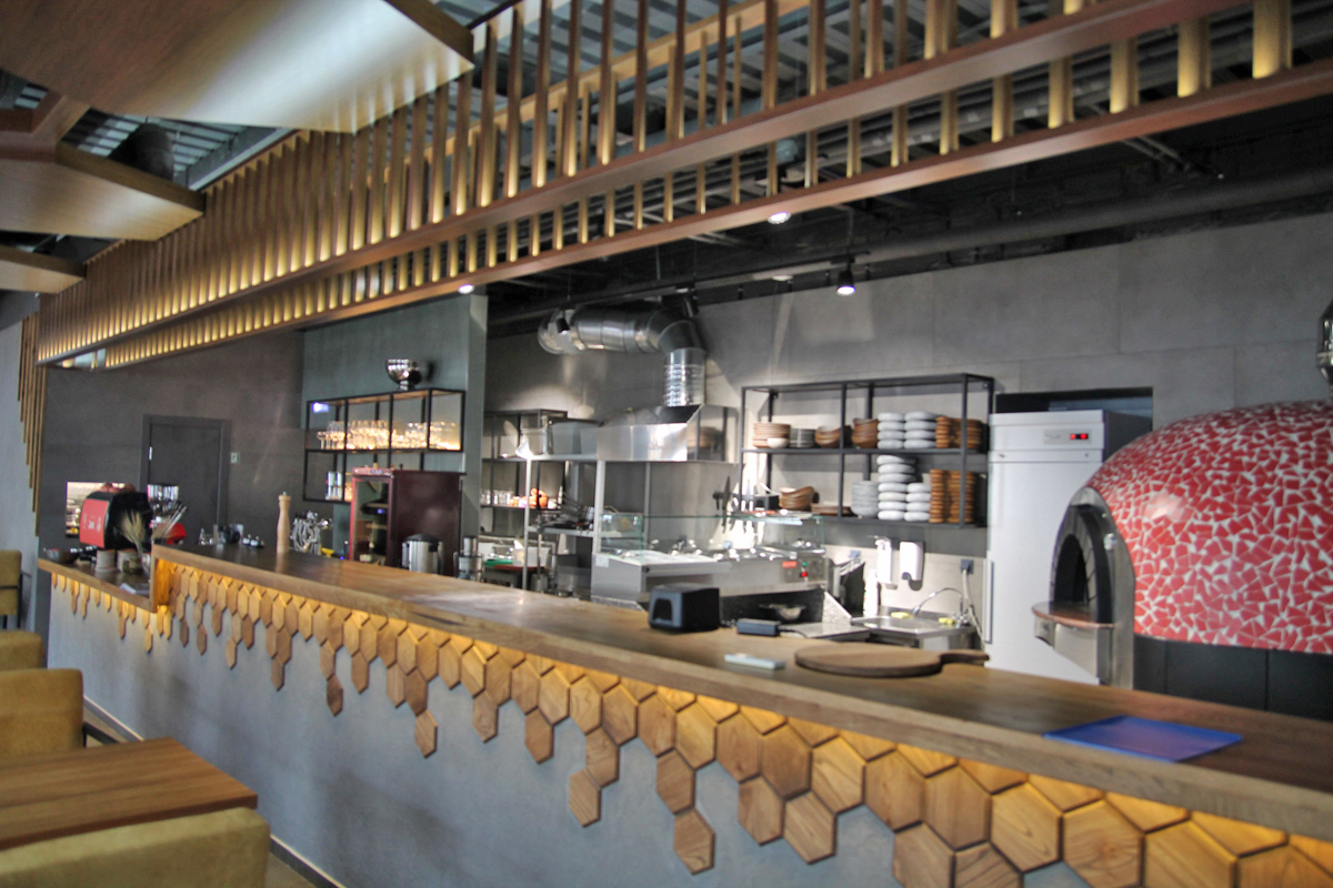 В основе кухни пиццерии, конечно же, печь для пиццы на дровах AS TERM D140K MOSAIC. Но, немаловажную роль занимает замес теста, в котором нет равных тестомесам GAM; для нарезки идеальных ломтиков применяется слайсер BECKERS; взбить, смешать или пюрировать продукты помогают высокопроизводительный профессиональный блендер VITAMIX BARBOSS ADVANCE, а также миксер ROBOT COUPE.