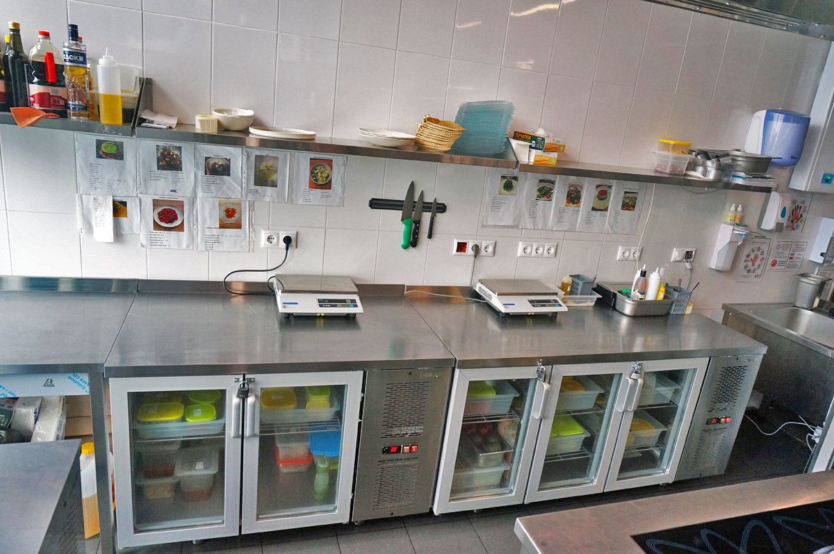 Для контроля за весом продуктов и ингредиентов блюд ресторан был оснащен товарными и порционными весами Cas.