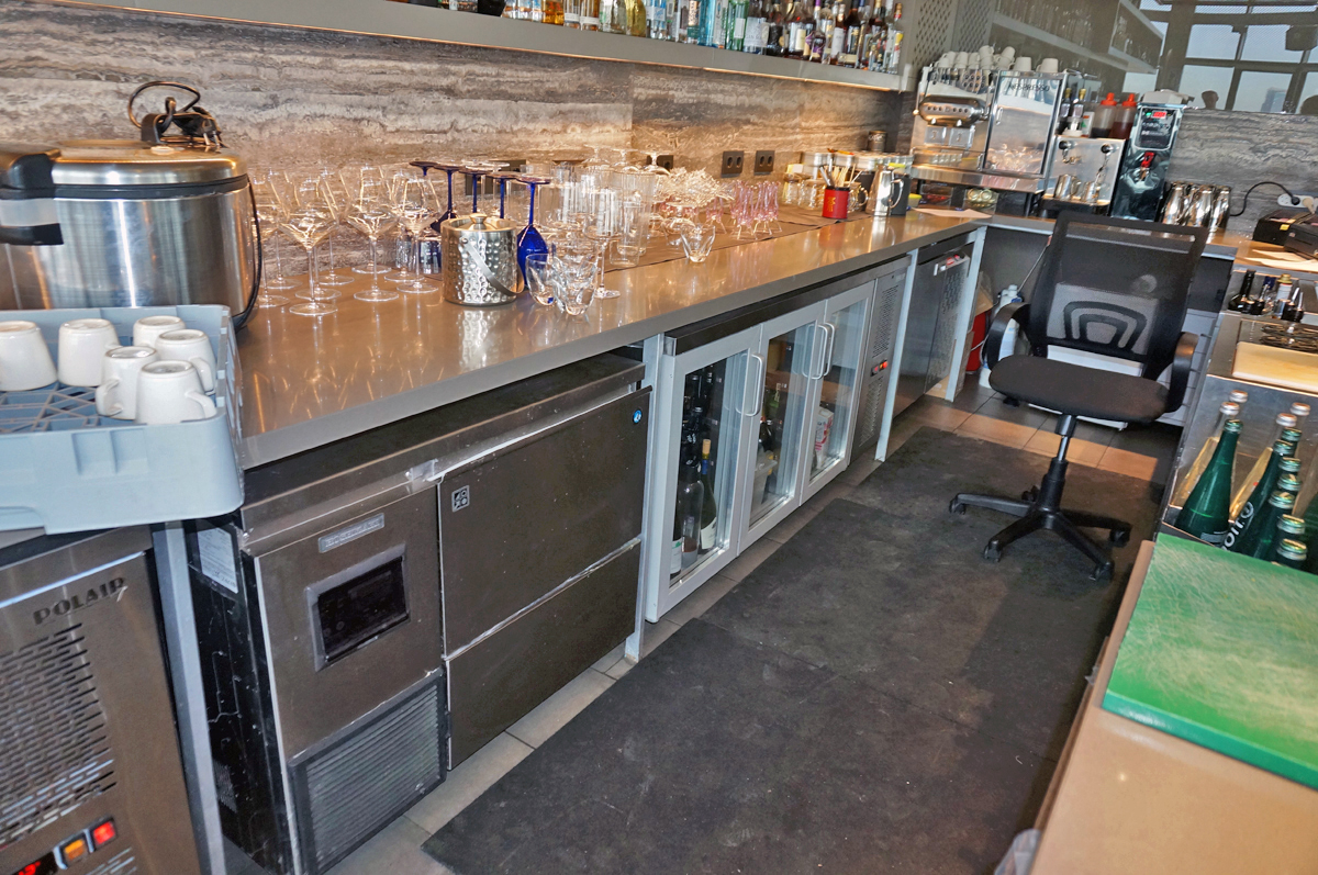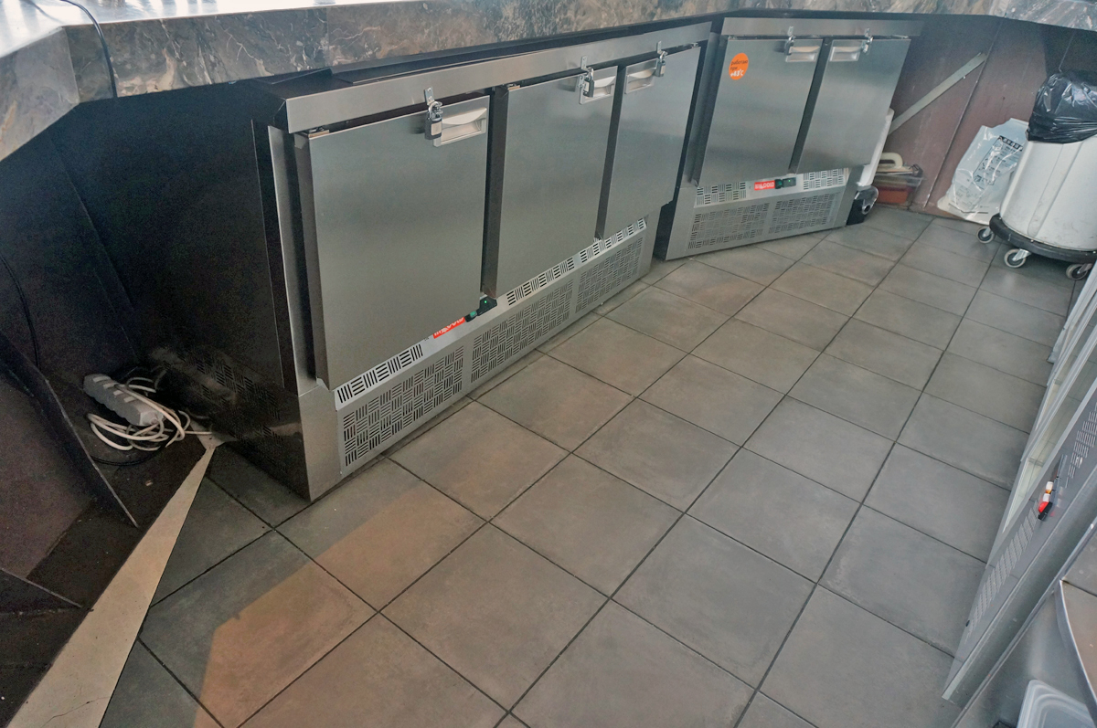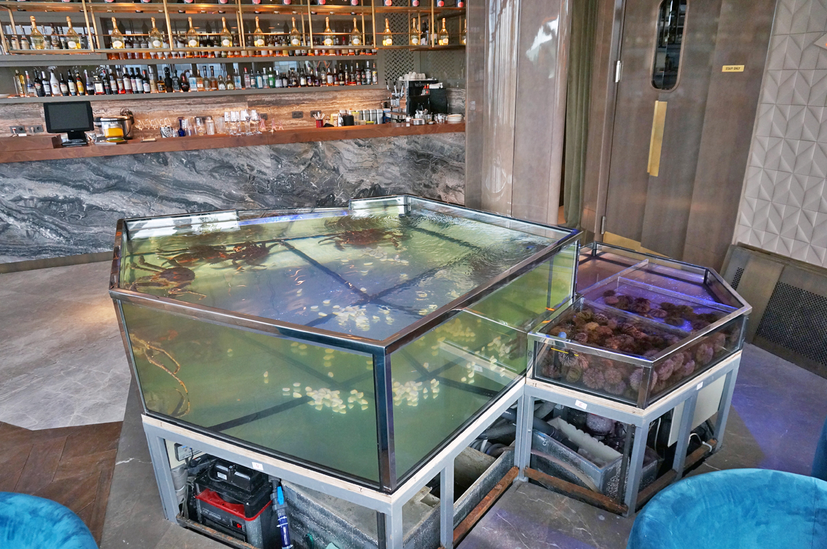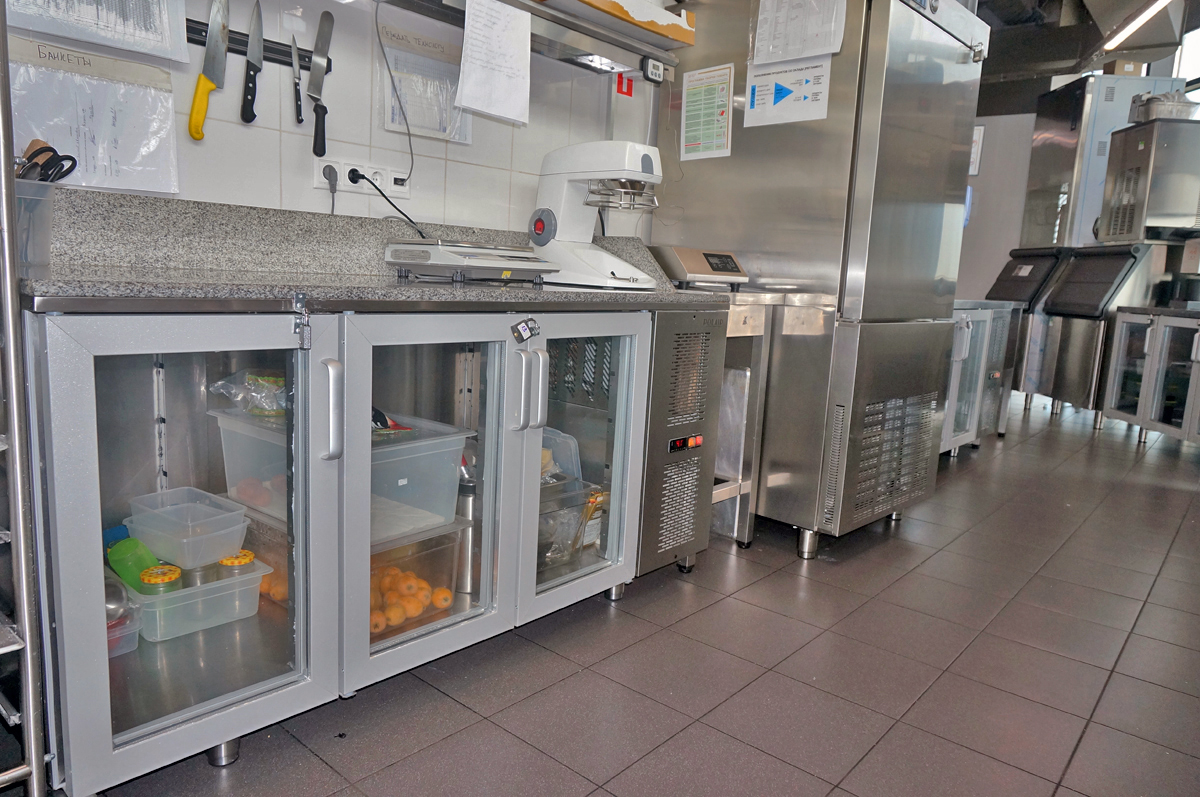 Сердце ресторана - Row bar c ледником, каменной столешницей и дизайнерской витриной для выкладки рыбы, где гости могут выбрать морепродукты на свой вкус. Необходимый объем и качество льда обеспечивают льдогенераторы Hoshizaki для гранулированного и кубкового льда. Дополнительно в зоне кухни установлено несколько льдогенераторов Scotsman, для снабжения льдом открытой витрины и нужд бара. Для приготовления суши прекрасно справляется со своей задачей рисоварка Indokor.