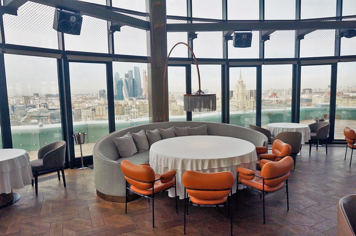 Зал ресторана «Сахалин» расположен на двух уровнях на 22 этаже.