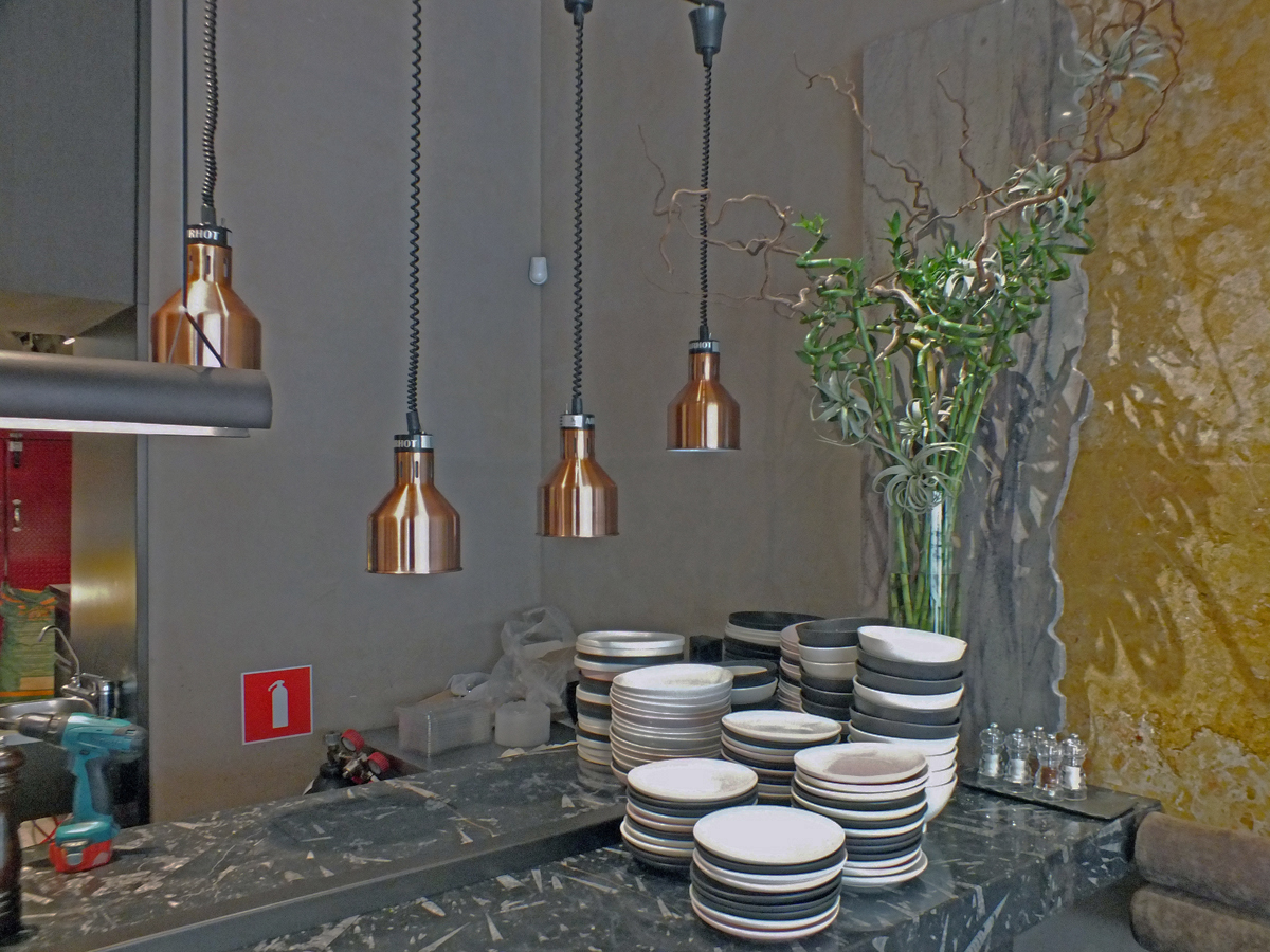 Особое место на кухне ресторана занял, пароконвектомат UNOX XECC-0513-EPR, с учетом небольшого пространства, отведенного под тепловую линейку, эта модель подошла идеально.