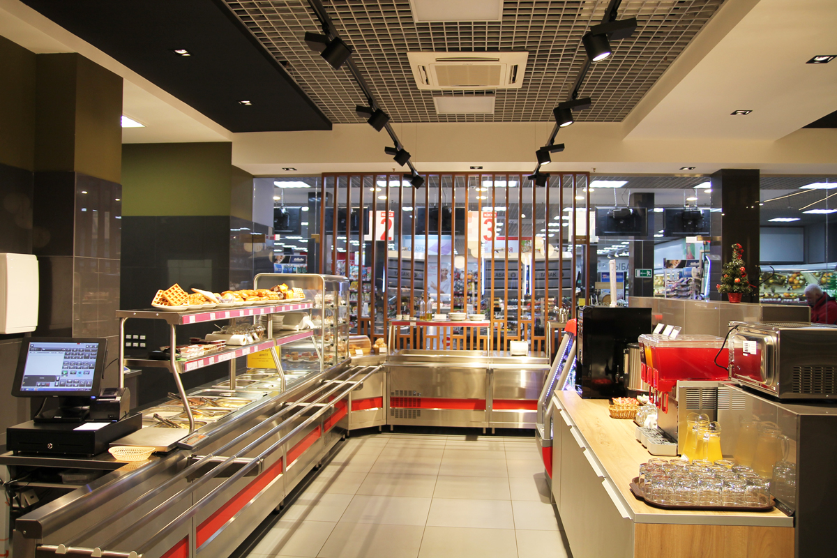 Специалистами компании «Русский Проект»® был разработан проект, подбор оборудования, поставка и монтаж, а также весь комплекс пусконаладочных работ в кафе самообслуживания сети магазинов Лотос-М в Ярославле. Также проект был взят на сервисное обслуживание.
