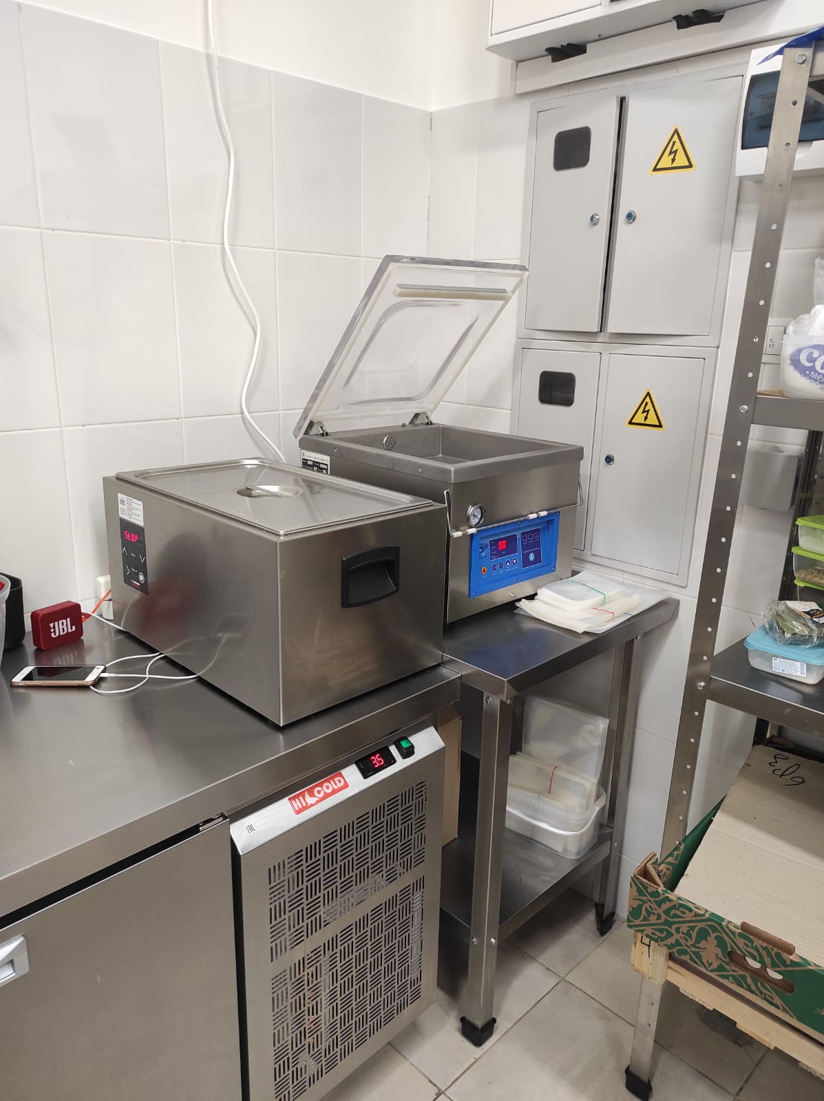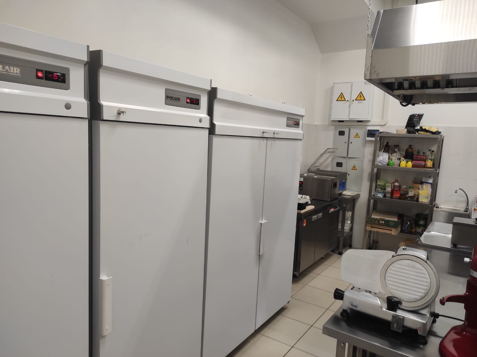 Холодильный цех оснащен; холодильными столами HICOLD;