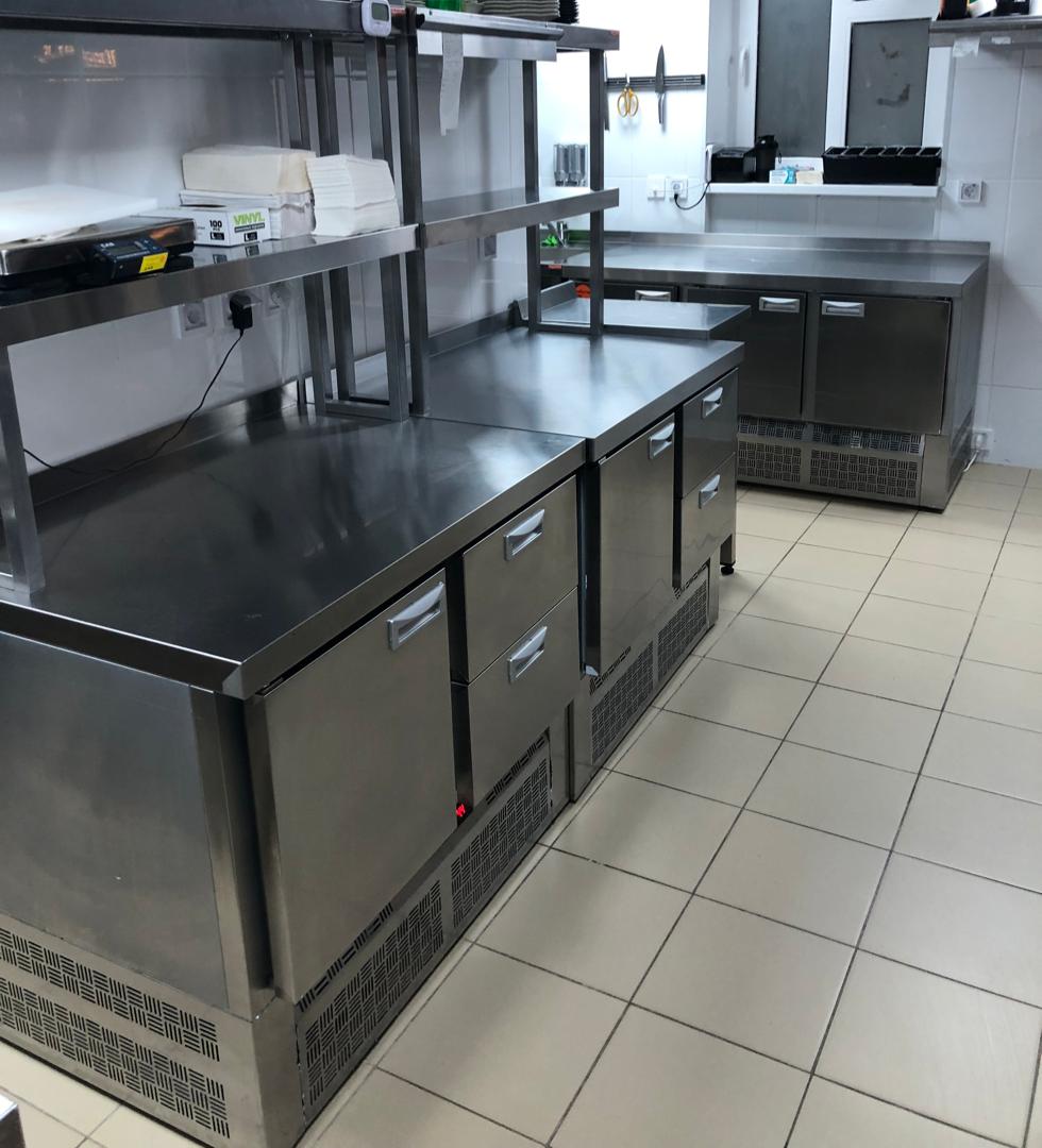 В составе холодильного оборудования незаменимые бренды: столы холодильные HICOLD, шкафы холодильные и морозильные POLAIR, шкаф шоковой заморозки и охлаждения POLAIR CR5-L, льдогенератор гранулированного COOLEQ IMS-85.