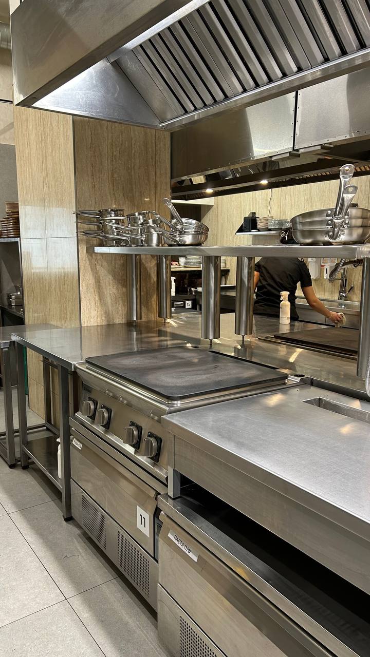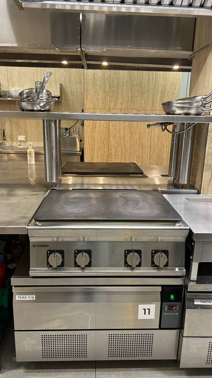 - Горячий остров и пароконвектомат производства TECNOINOX, состоящий из плит электрических, макароноварки, жарочной поверхности;