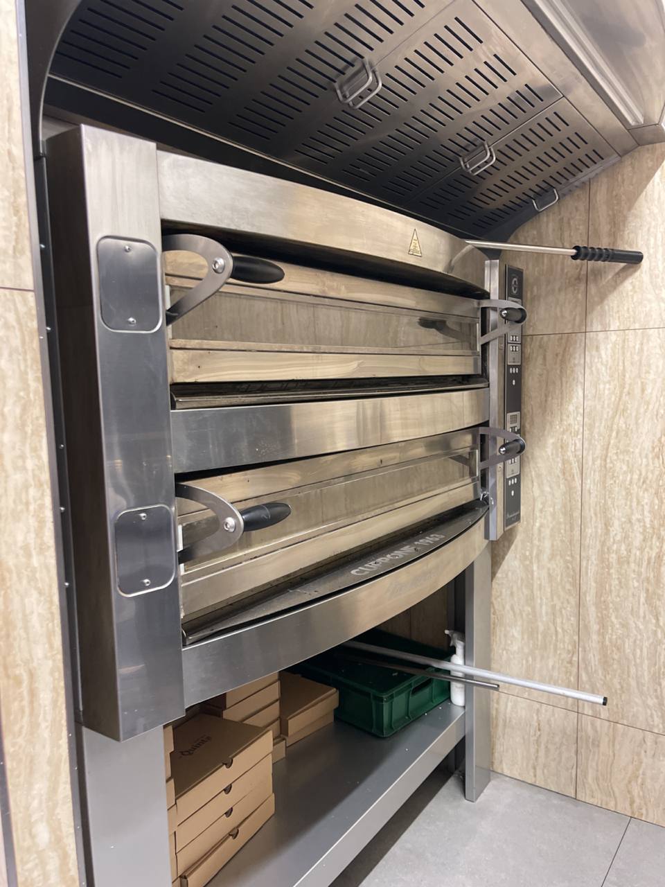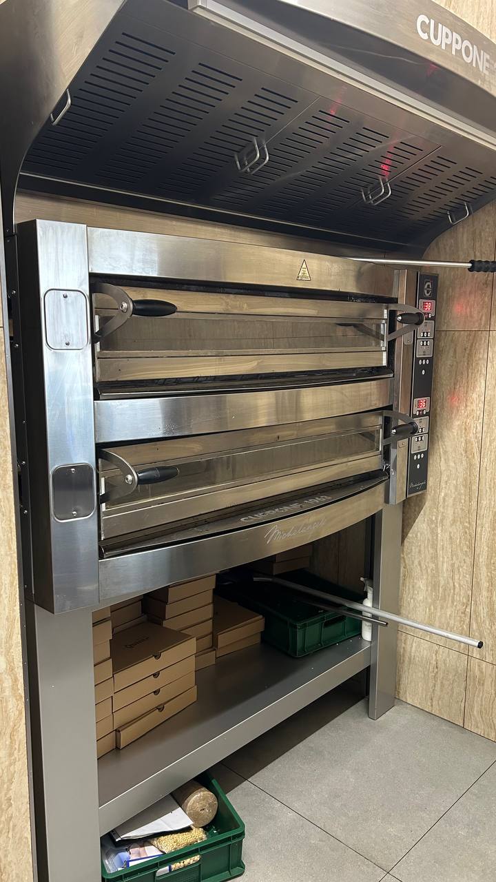 - Печь для пиццы CUPPONE ML635L/2CD в комплекте с подставкой и вытяжным зонтом, процесс приготовления римской пиццы в которой могут наблюдать гости ресторана;