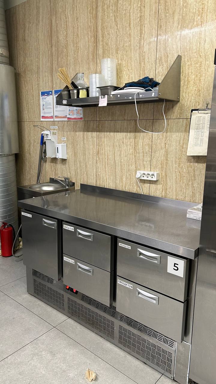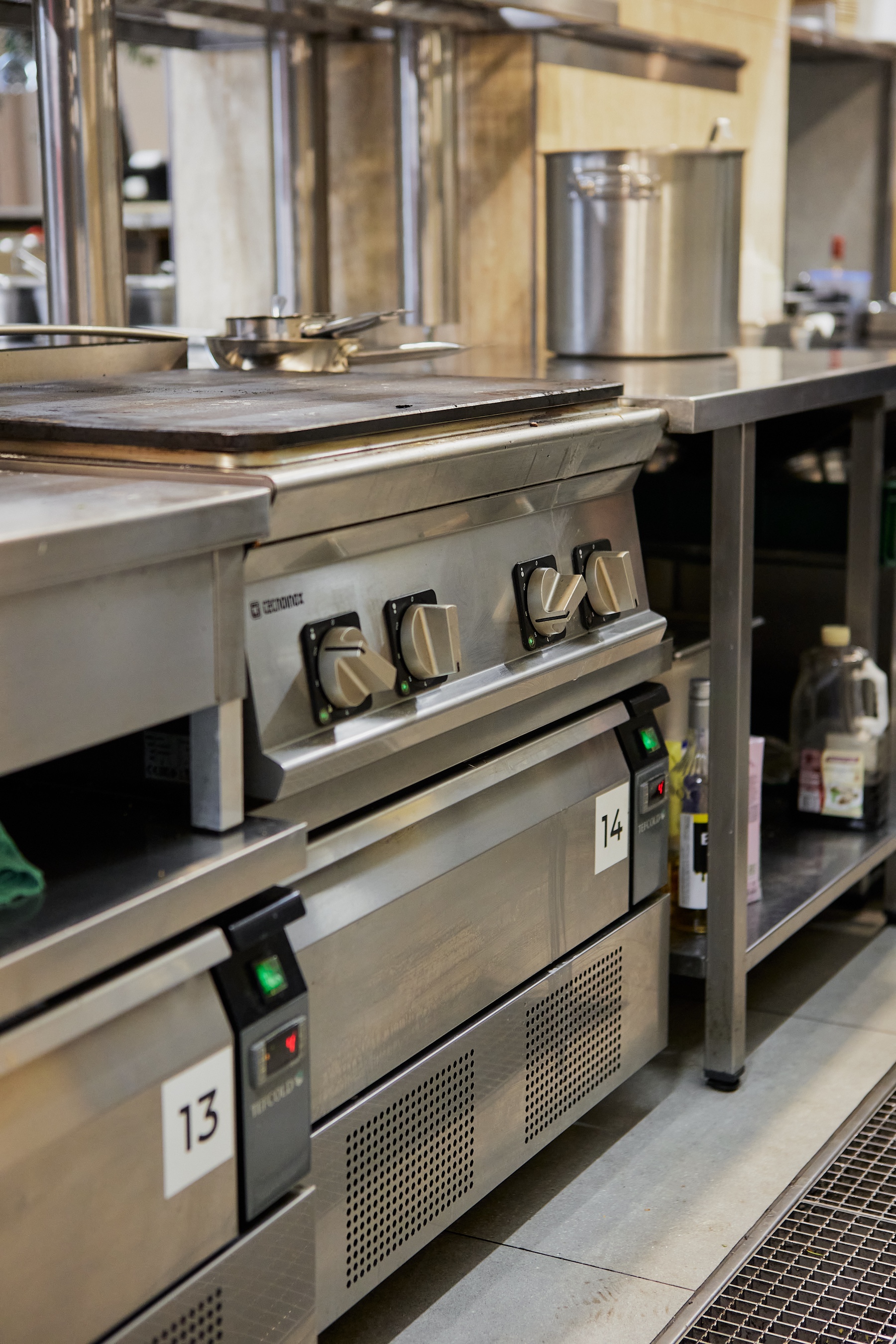 Холодный цех оснащен холодильными столами HICOLD и TEFCOLD; холодильными и морозильными шкафами POLAIR.