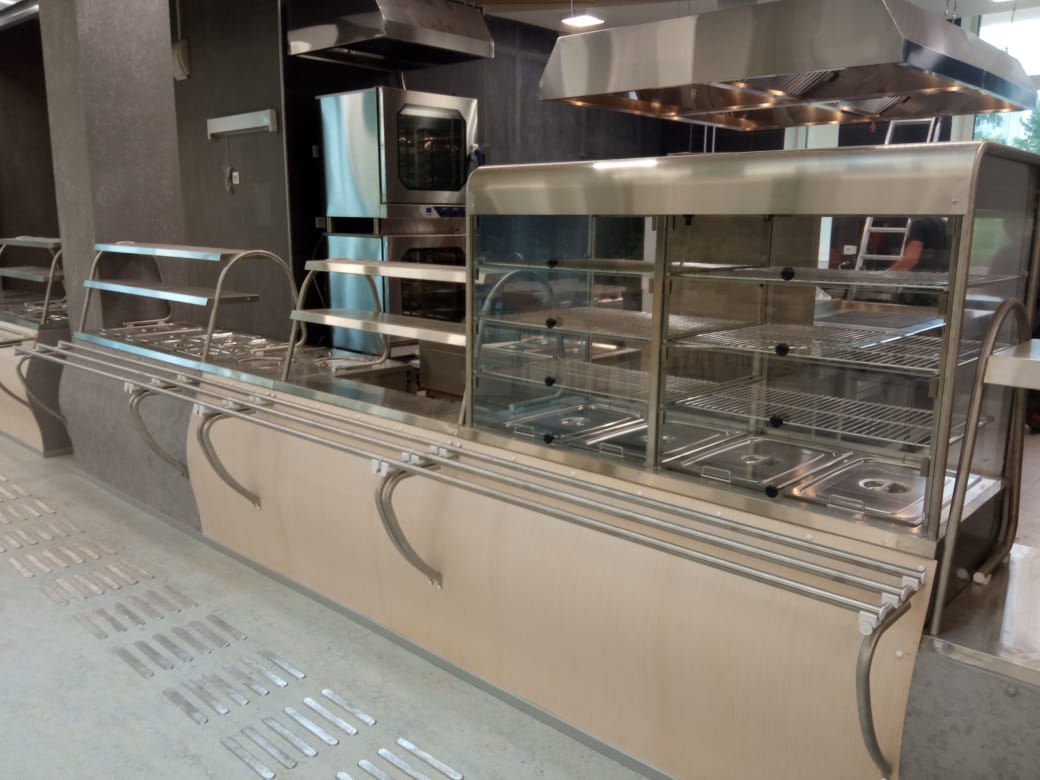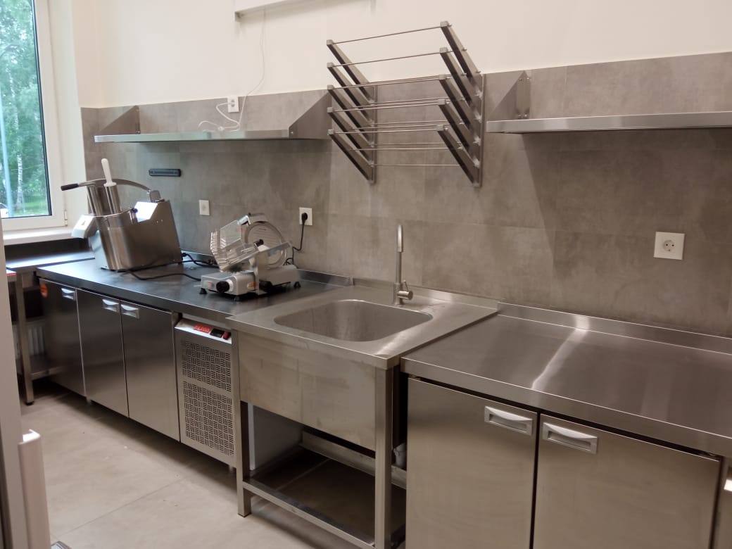 А также необходимое для работы поваров нейтральное оборудование производства ITERMA и HICOLD: зонты вытяжные, столы производственные, ванны моечные, стеллажи, полки настенные.