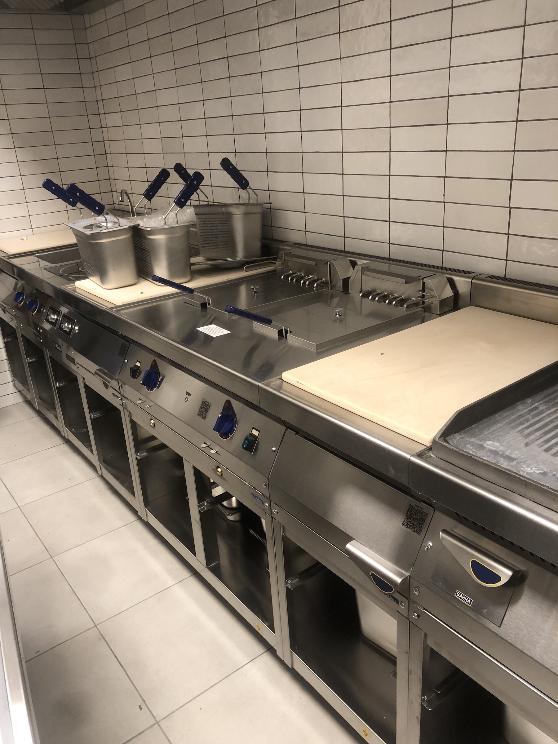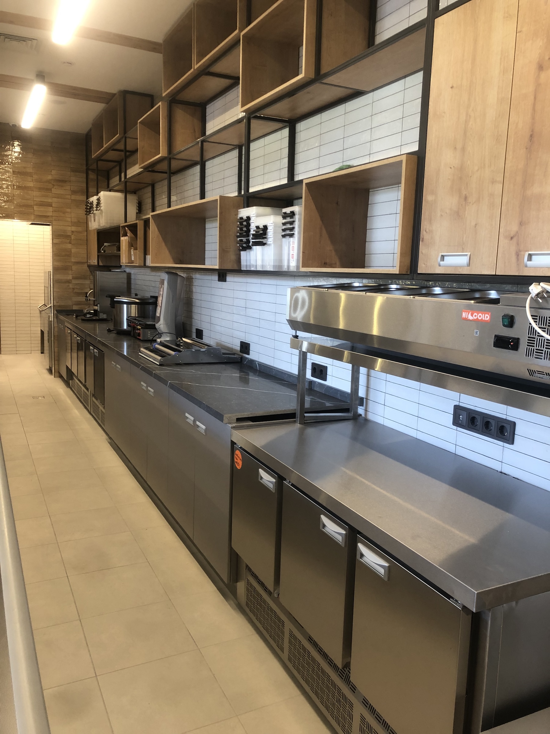 В результате было поставлено высокопроизводительное и надежное технологическое оборудование. В соответствии с пожеланиями Заказчика горячий цех оснащен тепловым оборудованием Abat, индукционными плитами INDOKOR и пароконвектоматом Abat, которые установлены в одну тепловую линию.