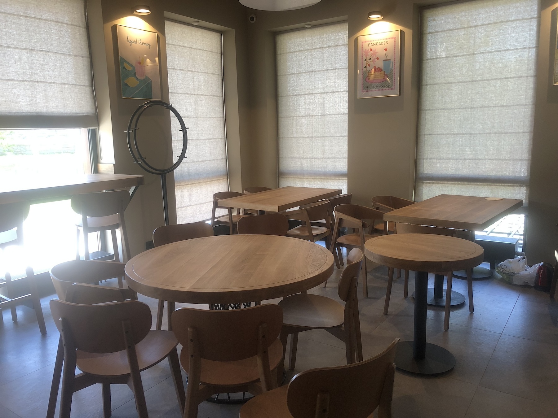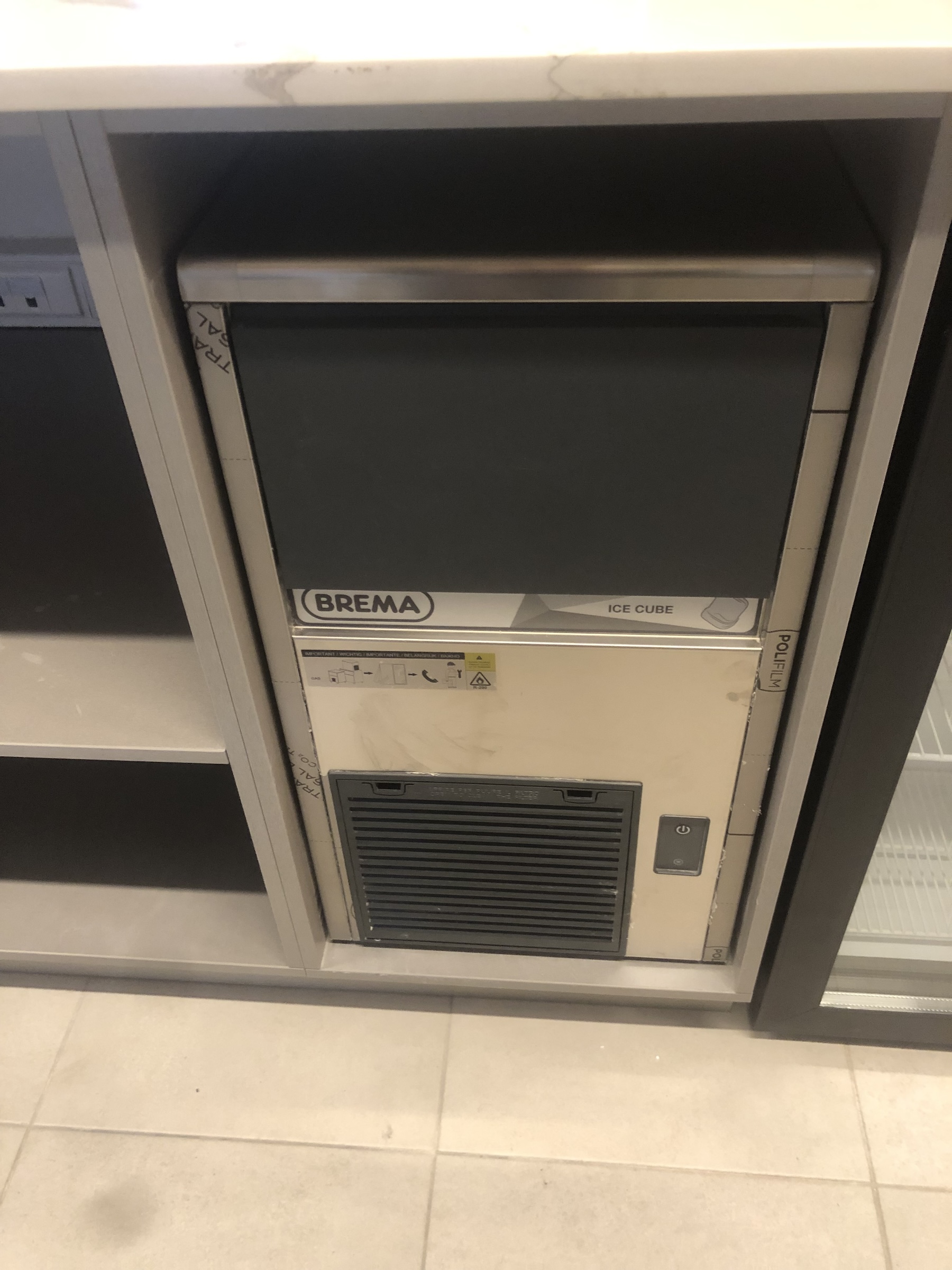 В проекте предусмотрена зона бара, которую оснастили оборудованием для обеспечения широкого ассортимента барного меню: блендер HAMILTON BEACH HBH550-CE, льдогенератор Brema, соковыжималка ROBOT COUPE J 80 BUFFET, вафельница ROLLER GRILL GES20.