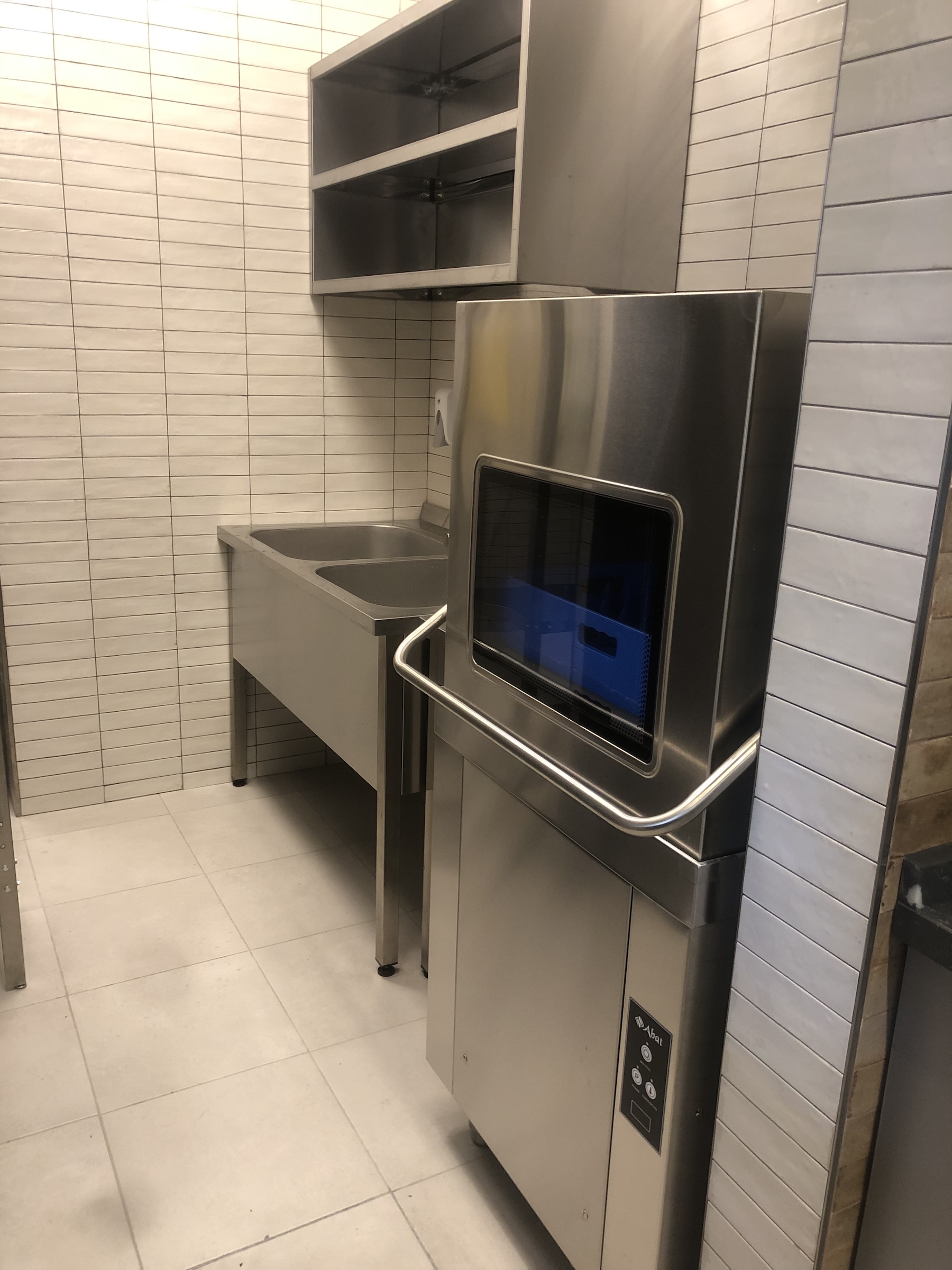 За чистоту посуды отвечает машина посудомоечная купольная ABAT МПК-700К, а в барной зоне - МАШИНА ПОСУДОМОЕЧНАЯ SILANOS N700 DIGIT / DS D50-32 С ДОЗАТОРАМИ И ПОМПОЙ.