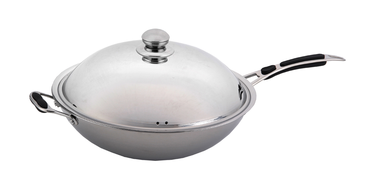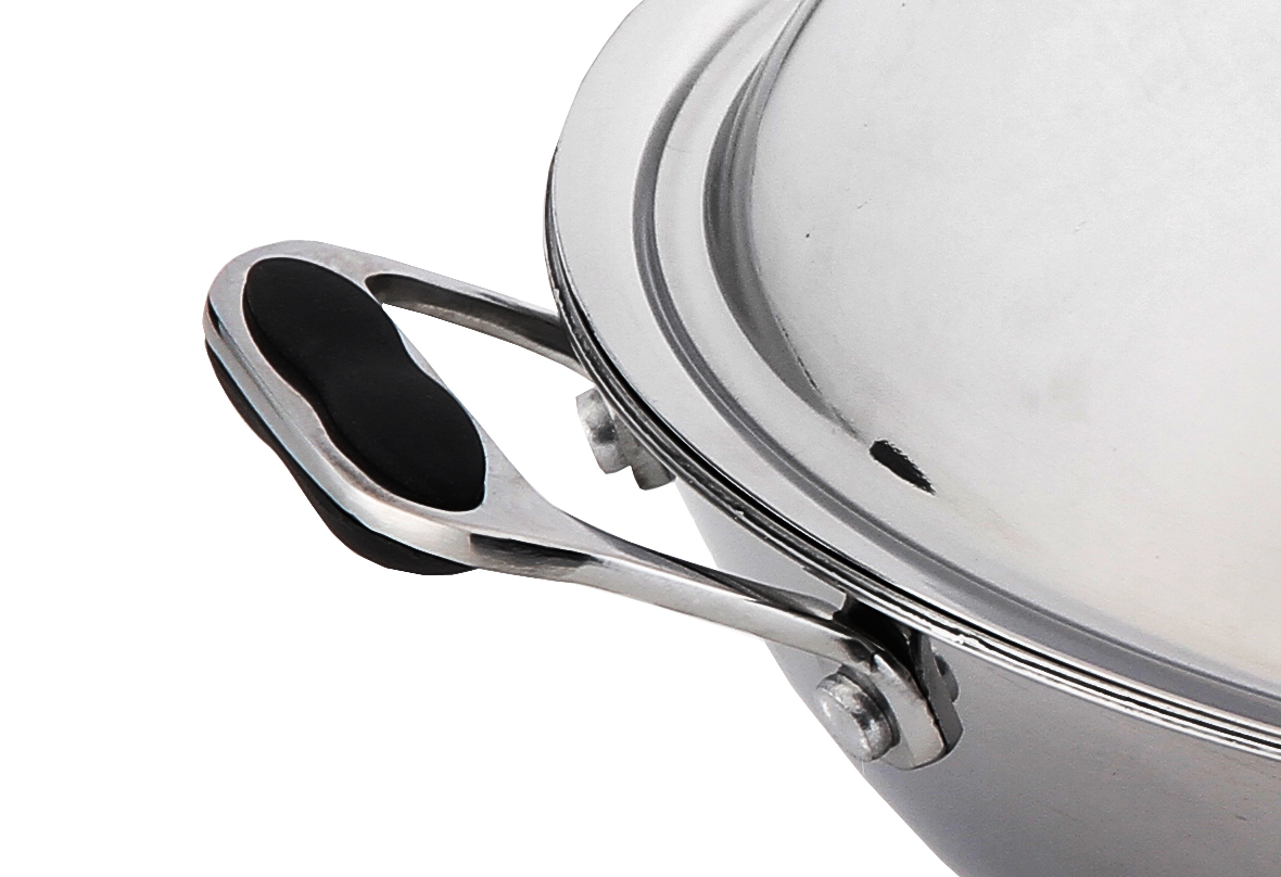 диаметр 36 см, материал - нерж.сталь, крышка, ручка с силиконовой вставкой 21 см, толщина стенок 2, 5мм |