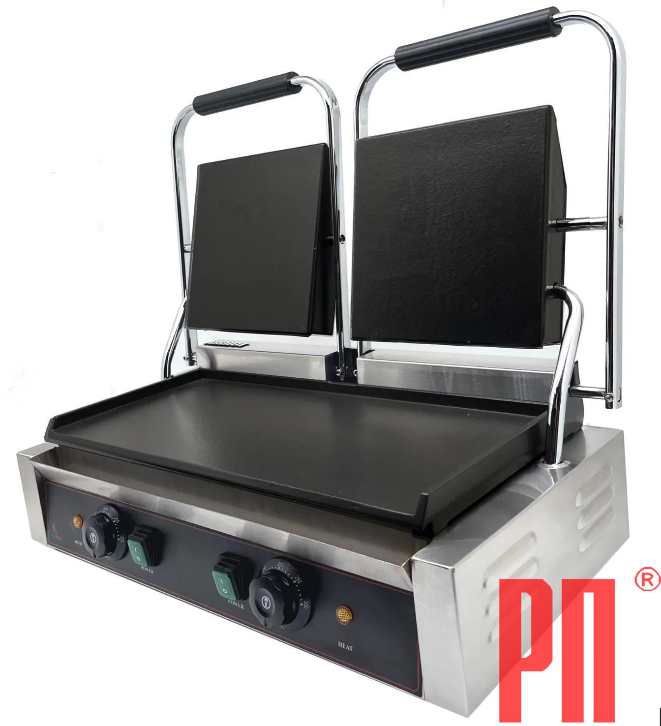 580x400x210мм, 3, 6 кВт, 220 В, 24 кг, двойной, гладкий верх и низ из чугуна, размер раб. поверх.: верхние 215х215 мм, низ 496х277 мм, темп. режим + 50/+ 300°С, съемный поддон, корпус из нерж. стали |