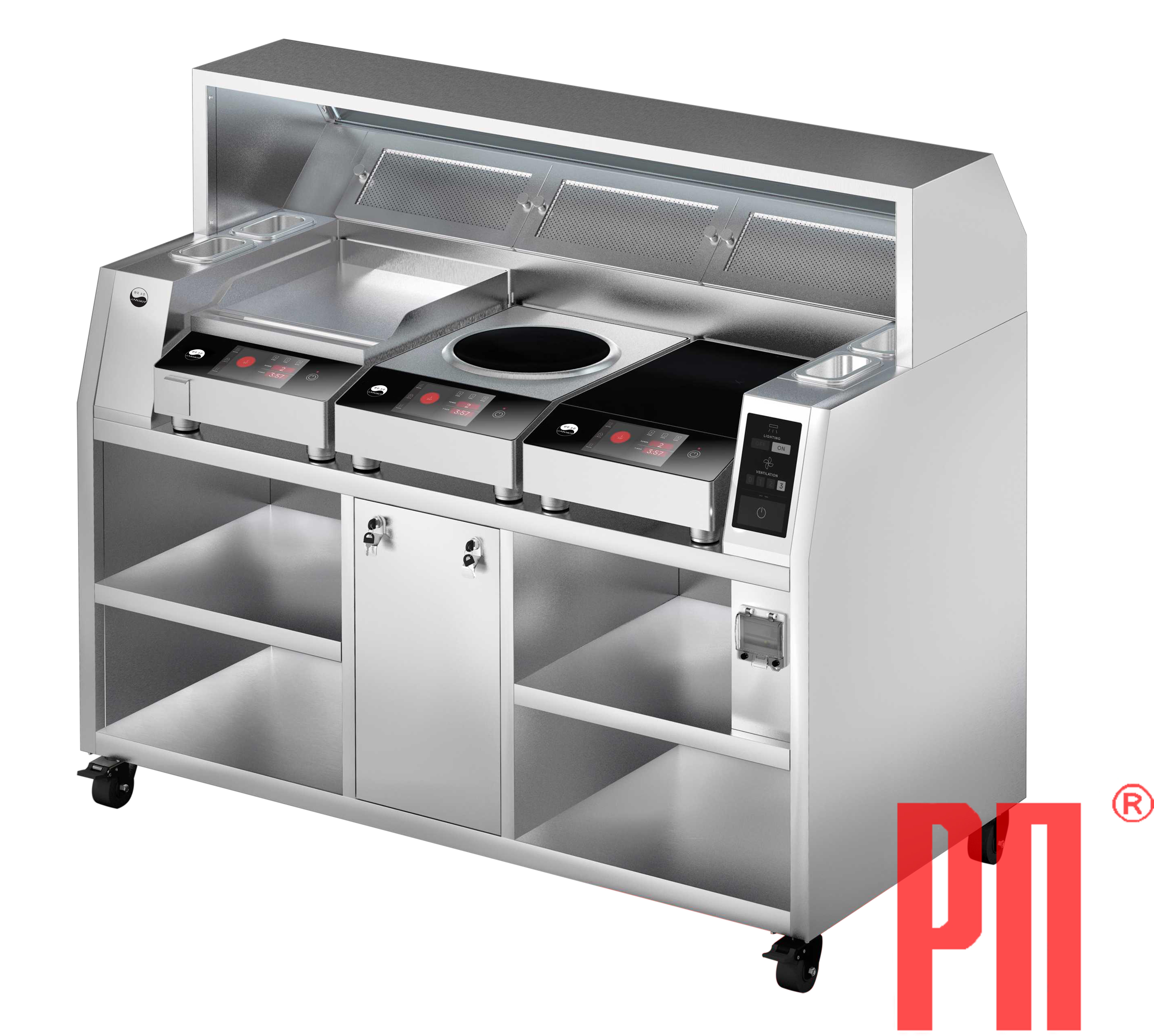 Кулинарная напольная станция INDOKOR IN-3 - мобильная станция для приготовления пищи с 3-уровневой вытяжкой и светодиодной системой освещения. Станция подходит для работы на нескольких электроприборах одновременно. Вы можете укомплектовать станцию исходя из ваших потребностей и пожеланий. Это революционное решение для современной кухни, которое поможет вам готовить разнообразные блюда быстро и качественно.