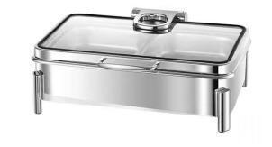 Материал - нержавеющая сталь 18/10. Размер 43 ( 48 с ручкой) х59х20 см. Размер внутренней гастроемкости 53х32, 5х6, 5 см. Крышка со стеклом, откидная с механизмом плавного закрытия. Предназанчен для выкладки готовых блюд, гарниров и закусок. Используется в заведениях общественного питания: при организации линий самообслуживания в кафе, столовых и ресторанах, шведских столов в отелях, банкетов, фуршетов и кейтеринга. Подогрев: горелка, нагревательный элемент MVQ артикул A3423